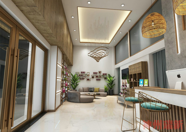 二、前廳的設計主要是使客戶產生一種體貼入微的感覺,要有家的感覺。便捷易找的功能服務分區,周到熱誠的服務態度,以及由親切的裝飾觸感,宜人的環境色彩和照明,舒適的溫濕度,體貼的家具設置等,它們共同營造的安逸祥和的氛圍是神州瑞新在美容院前廳設計的要求。