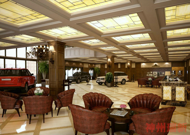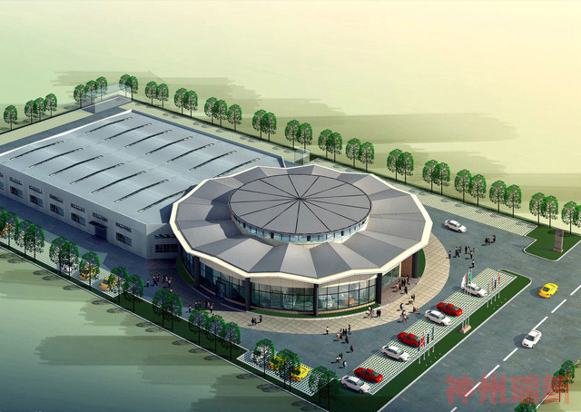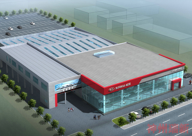 神州瑞新會(huì)通過(guò)布置創(chuàng)意照片展示4s店裝修效果,結(jié)構(gòu)形式采用鋼結(jié)構(gòu),屋面采用保溫單層壓型鋼板復(fù)合保溫屋面。4s店裝修外立面是剛結(jié)構(gòu)玻璃幕墻。