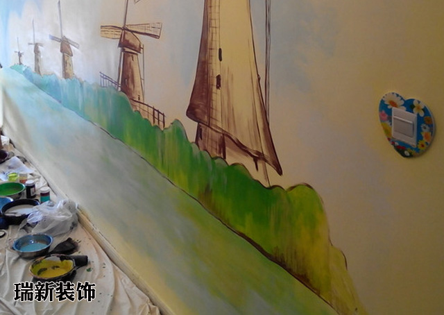 彩繪主要休閑娛樂空間、店鋪、燈商業空間的墻體繪畫。