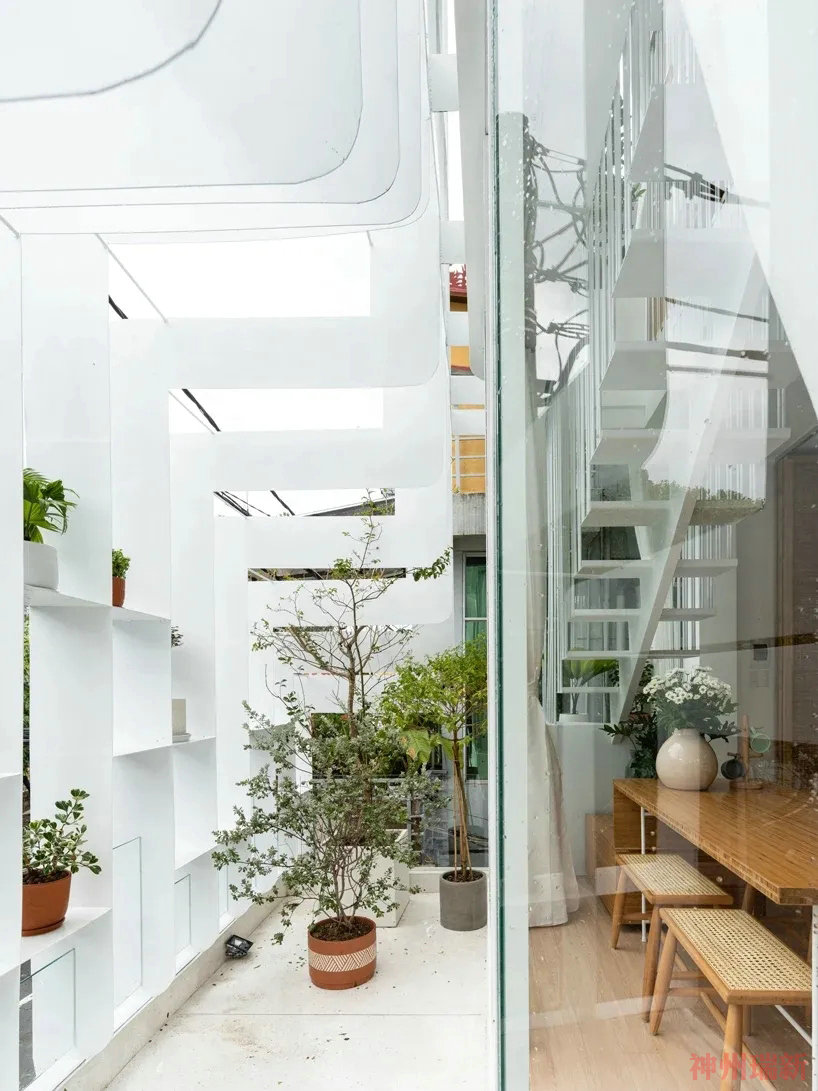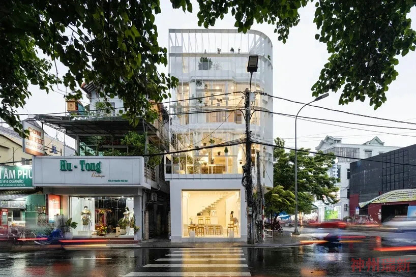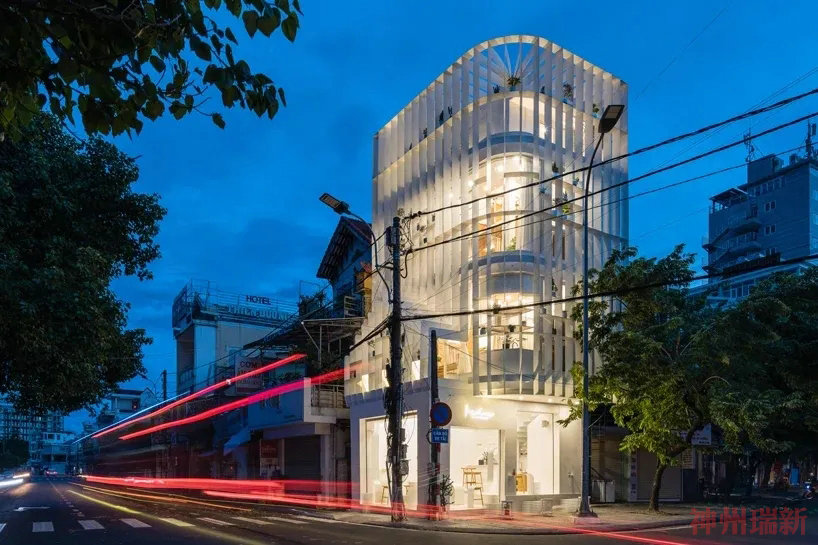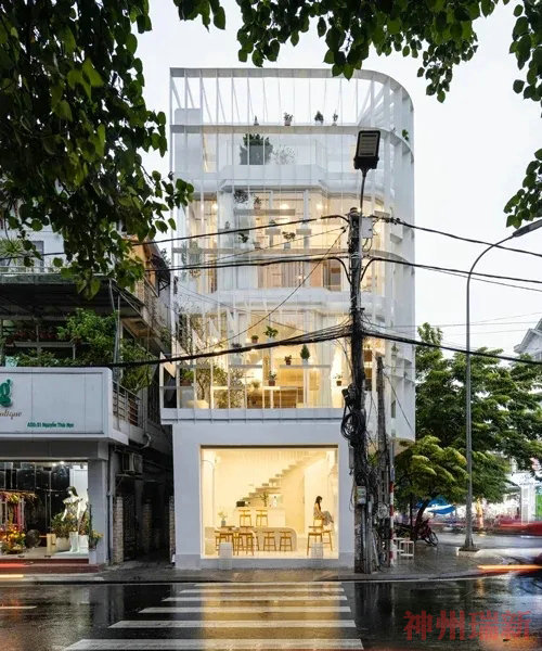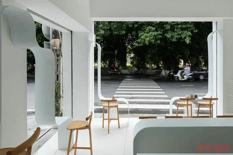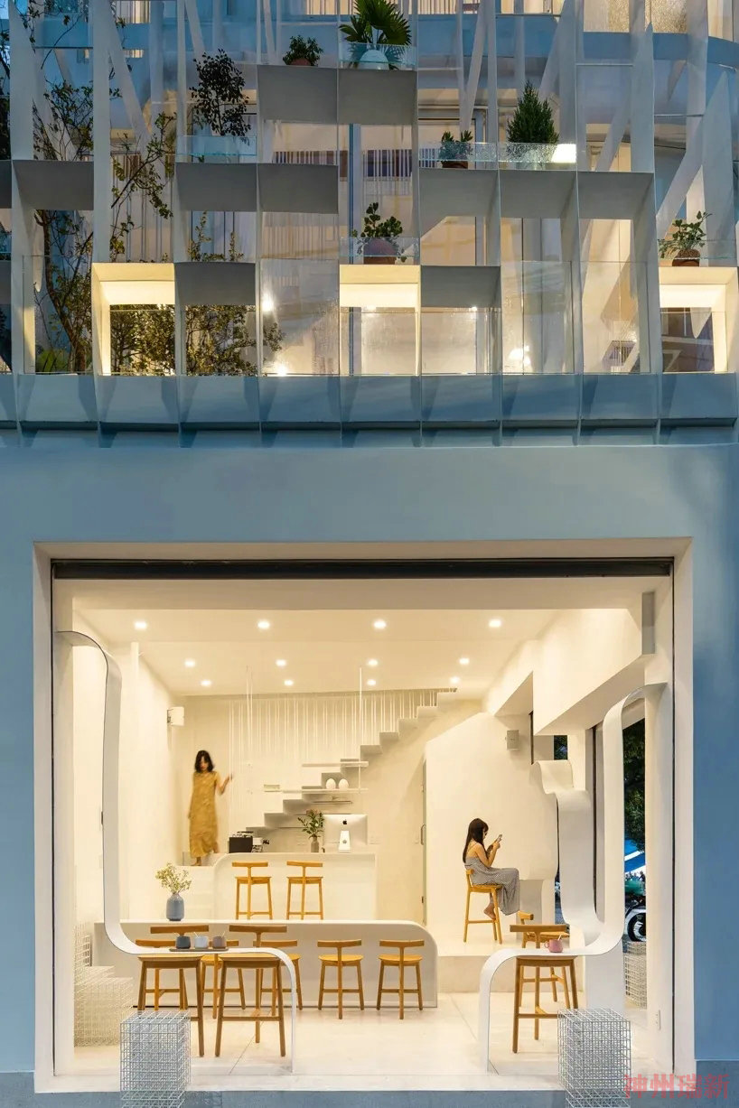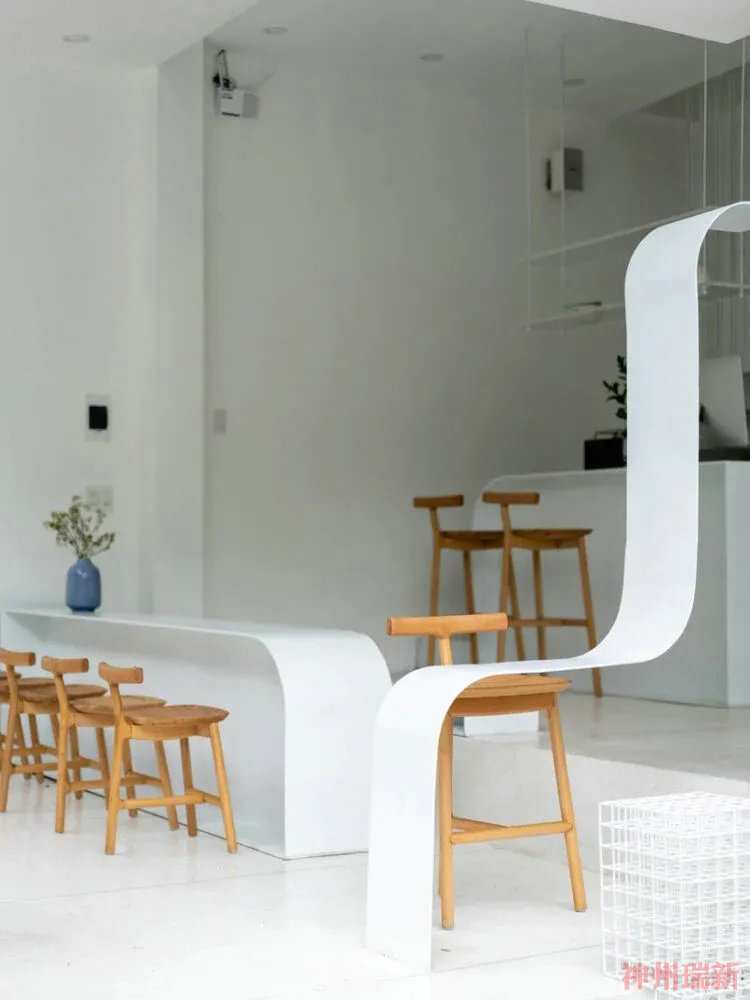 本案咖啡店店鋪裝修設計使用了玻璃隔斷和百葉窗,這種處理方式使店鋪亮度更加通透,打破與周圍建筑的隔閡,因為地理位置的特殊,神州瑞新設計師處理完之后,跟周圍建筑融為一體。
