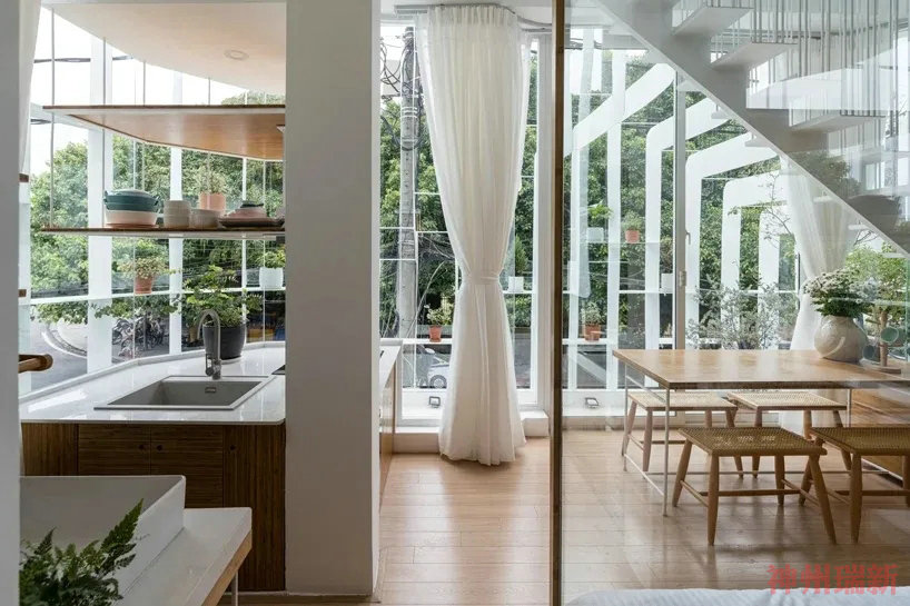 在嘈雜的十字路口,神州瑞新擅長在店鋪的環境上創新,在本案的店鋪裝修設計中運用了竹子的元素,竹子是一種綠色健康材料。在店鋪白色的大背景下加上竹子的顏色以及再搭配各種盆景裝飾,讓來的每一個客戶流連忘返,增加了客戶的粘性。