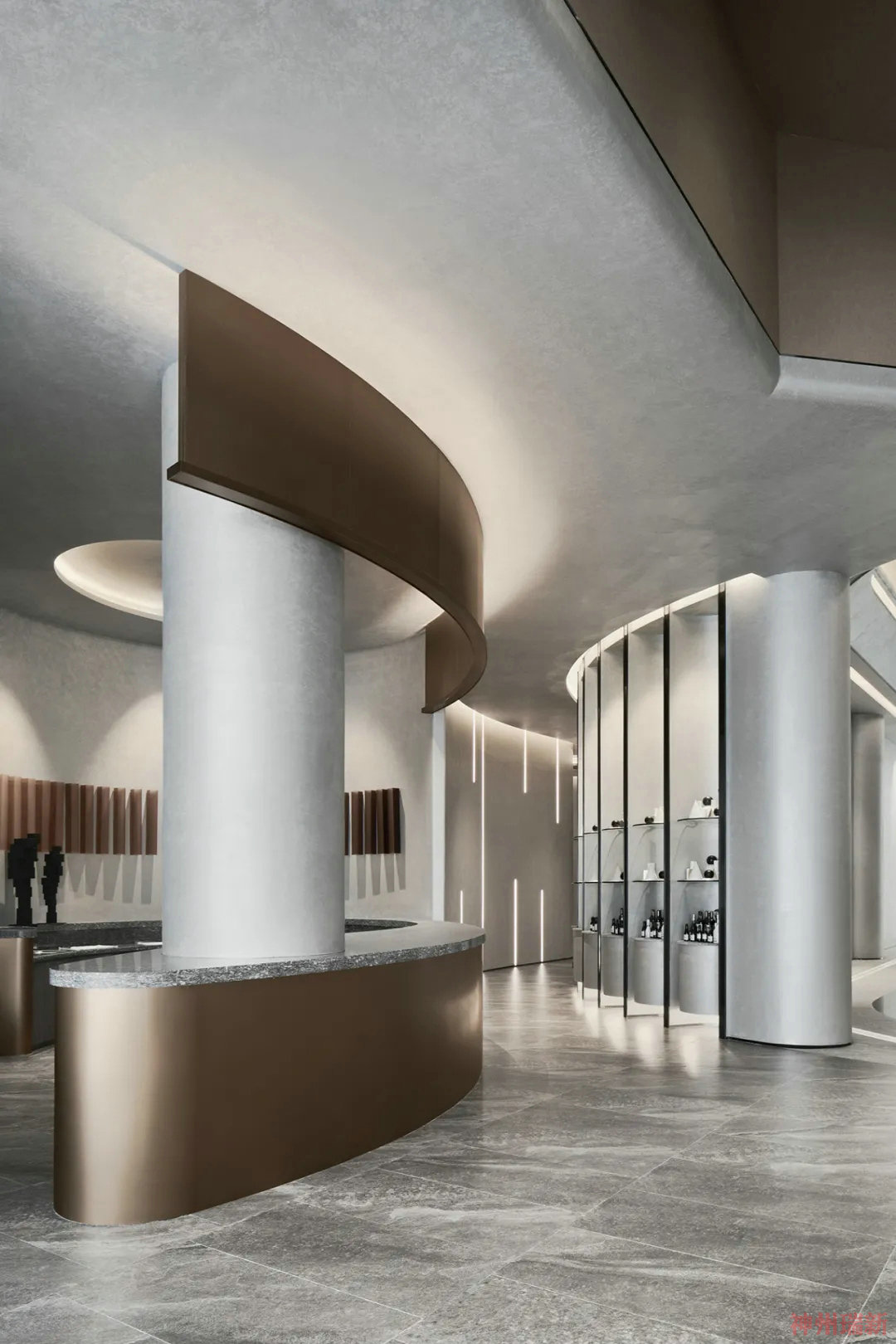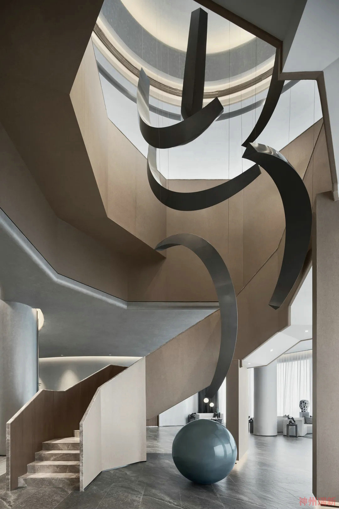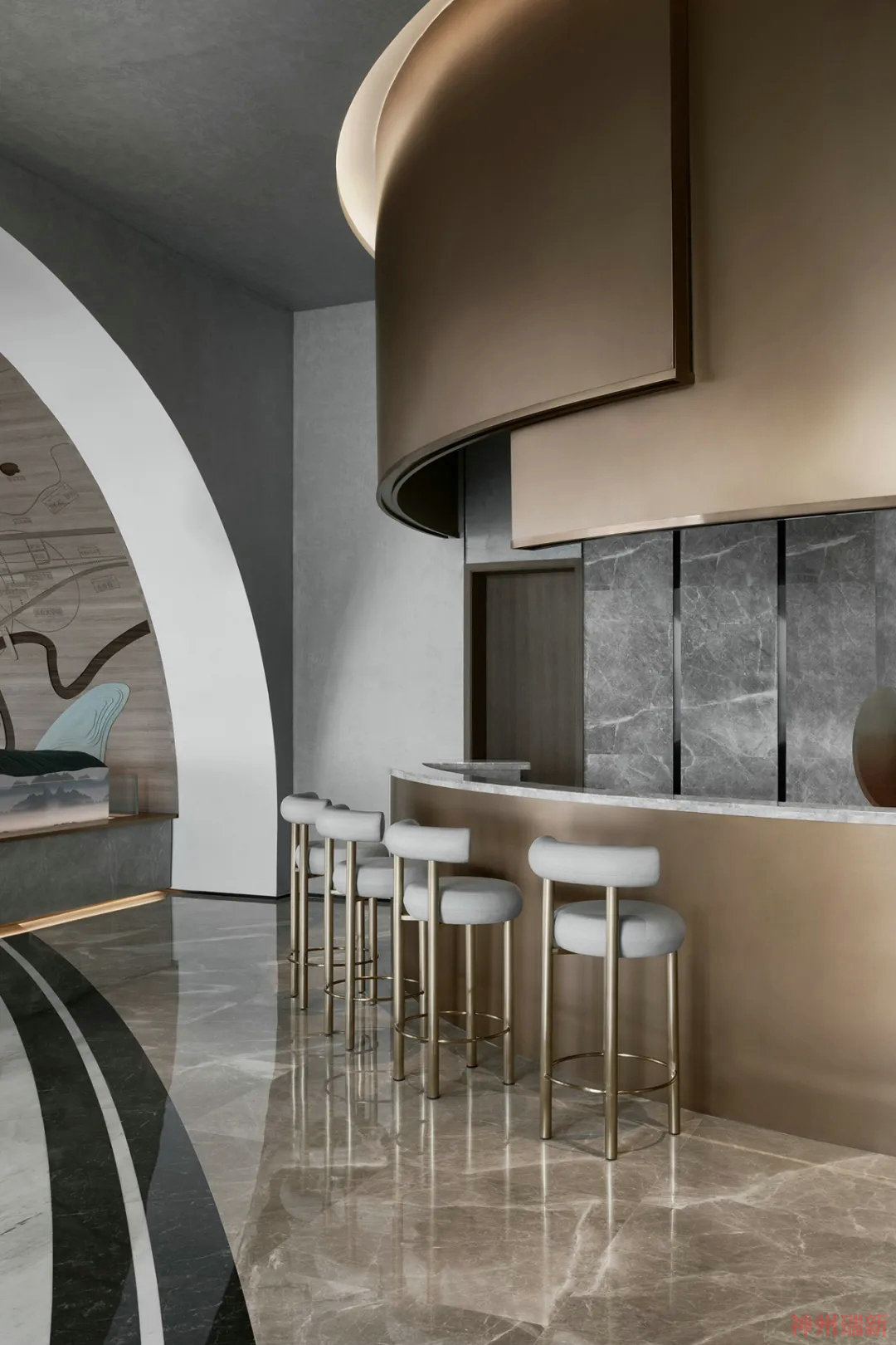 神州瑞新設計師將整個一層商務空間設置為一個多維空間線與點的曲直交錯,室內軟裝配飾和家具在用個性和品質打造宇宙空間視野格局,流線型的空間感,把室內的每一個點和實物串聯在一起,此起彼伏。