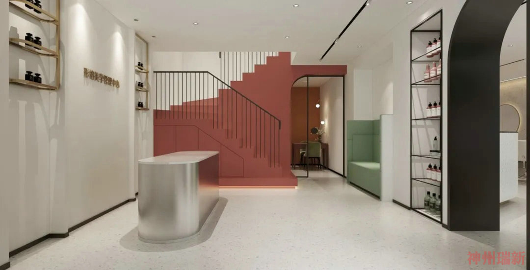 本案整體風格通透,在獨立性上也是非常的nice,神州瑞新擅長對每個客戶的企業文化進行總結,融入到裝修設計中,根據同行美容美發店裝修設計風格進行差異化改造,打造屬于客戶自己的店鋪裝修風格,在視覺上或者流行度上處于領先位置。