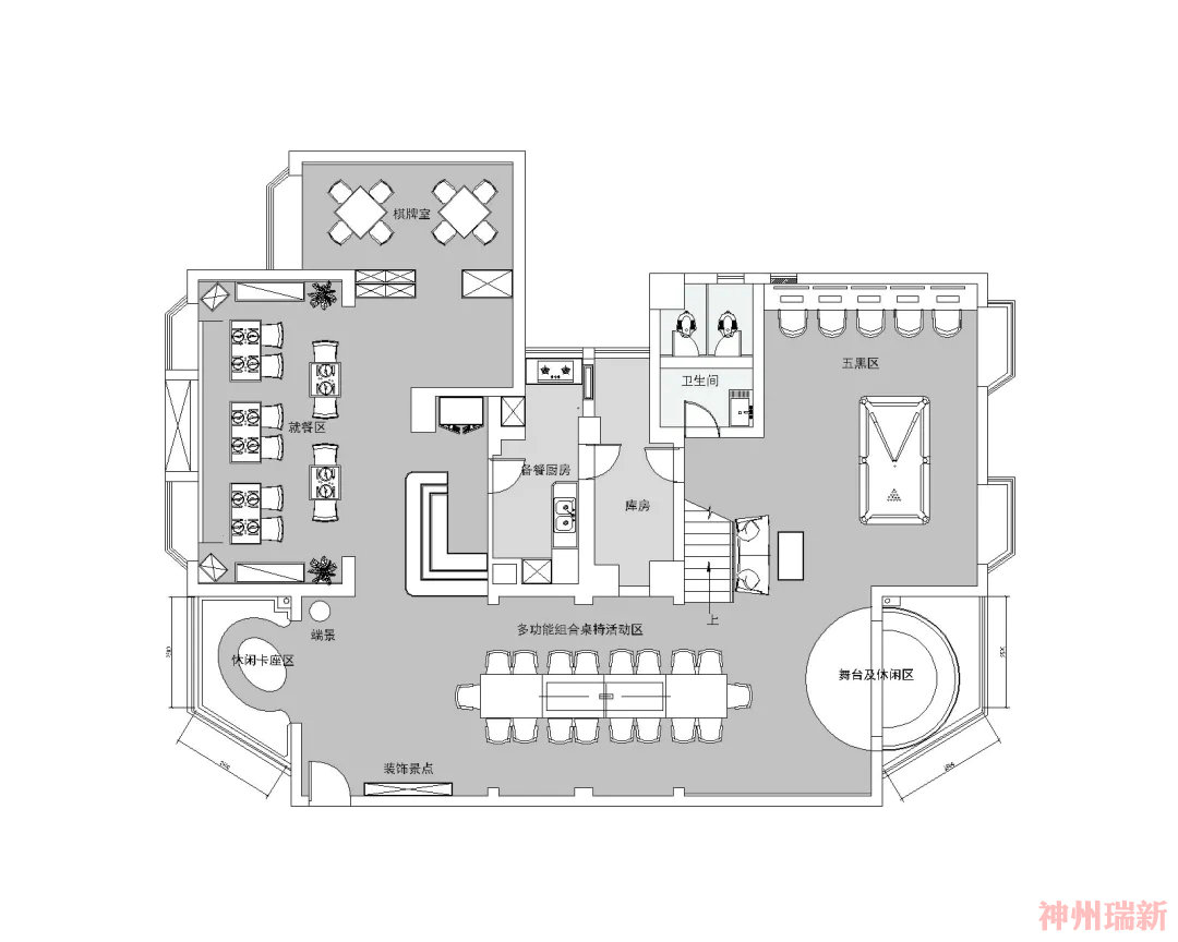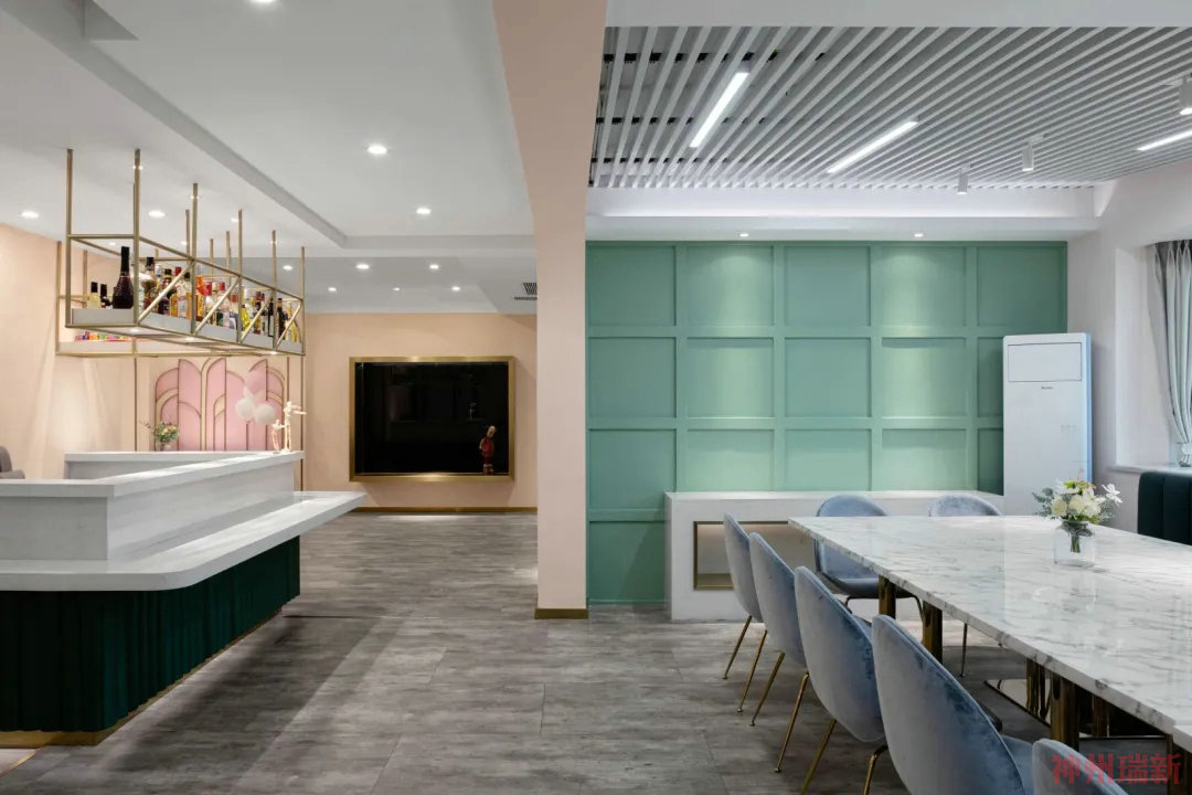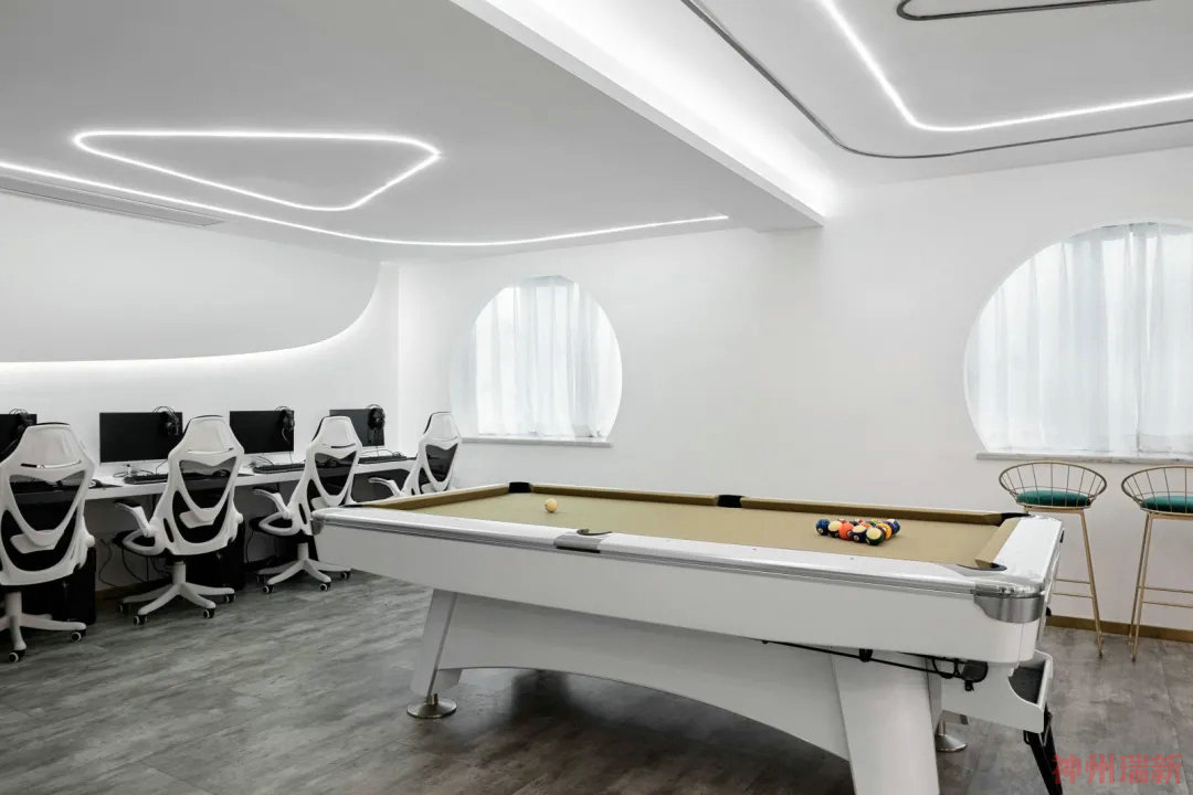 本案是400平米的室內(nèi)休閑娛樂場所轟趴館裝修案例,有限的空間內(nèi),各種娛樂設施齊全,區(qū)域清晰,神州瑞新裝飾在設計是主要是以布局的合理規(guī)劃為目的,達到各個空間的協(xié)調(diào)。也體現(xiàn)了神州瑞新裝飾作為烏魯木齊裝修公司中唯一一家大型一體化工裝裝修公司在工裝領域的實力。