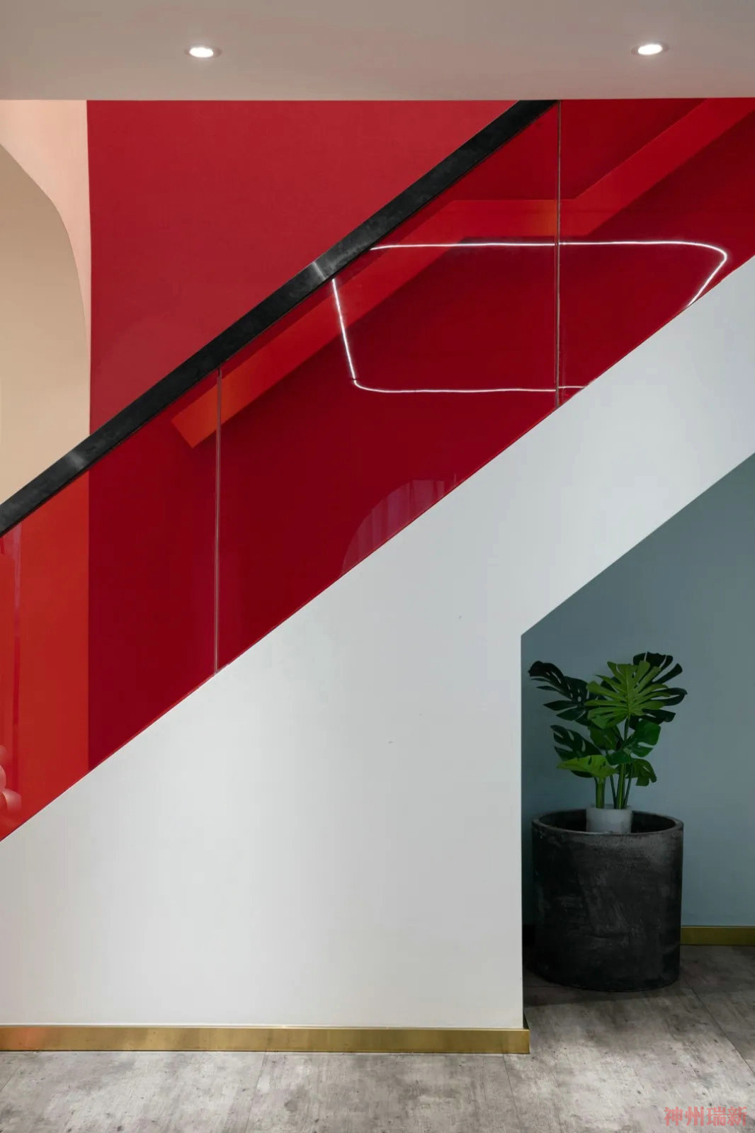 樓梯的設計,顏色上搭配的比較重,主要是呈現(xiàn)立體感。突出空間靈動時尚的氛圍。