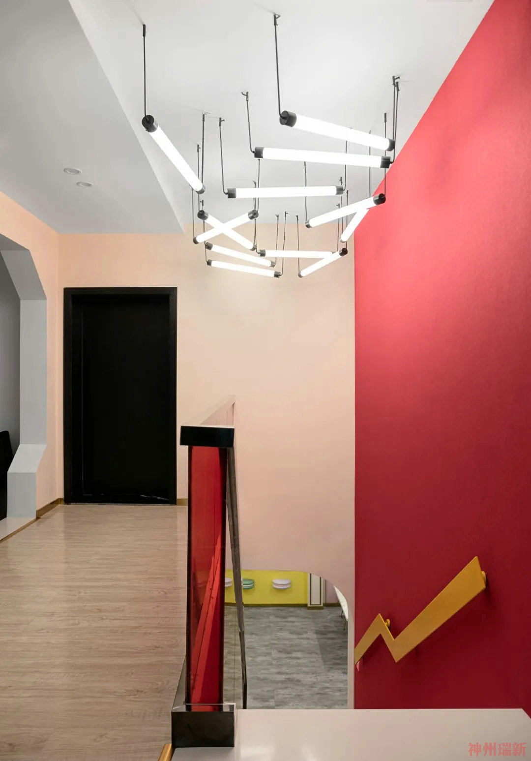 整個過道是做了隱蔽燈的處理,目的是借光提供照明的同時又能保持過道的簡潔大方視覺感。
