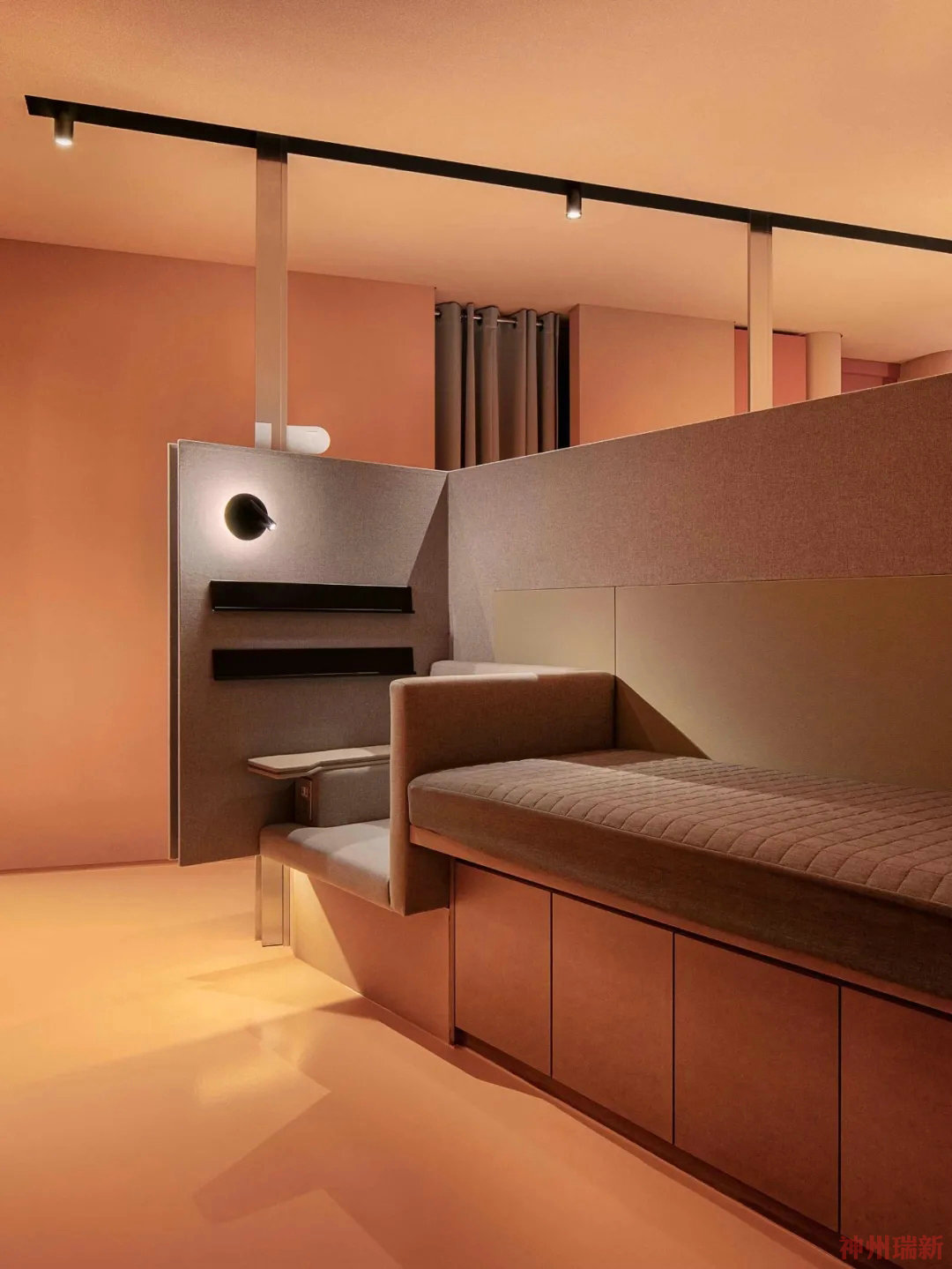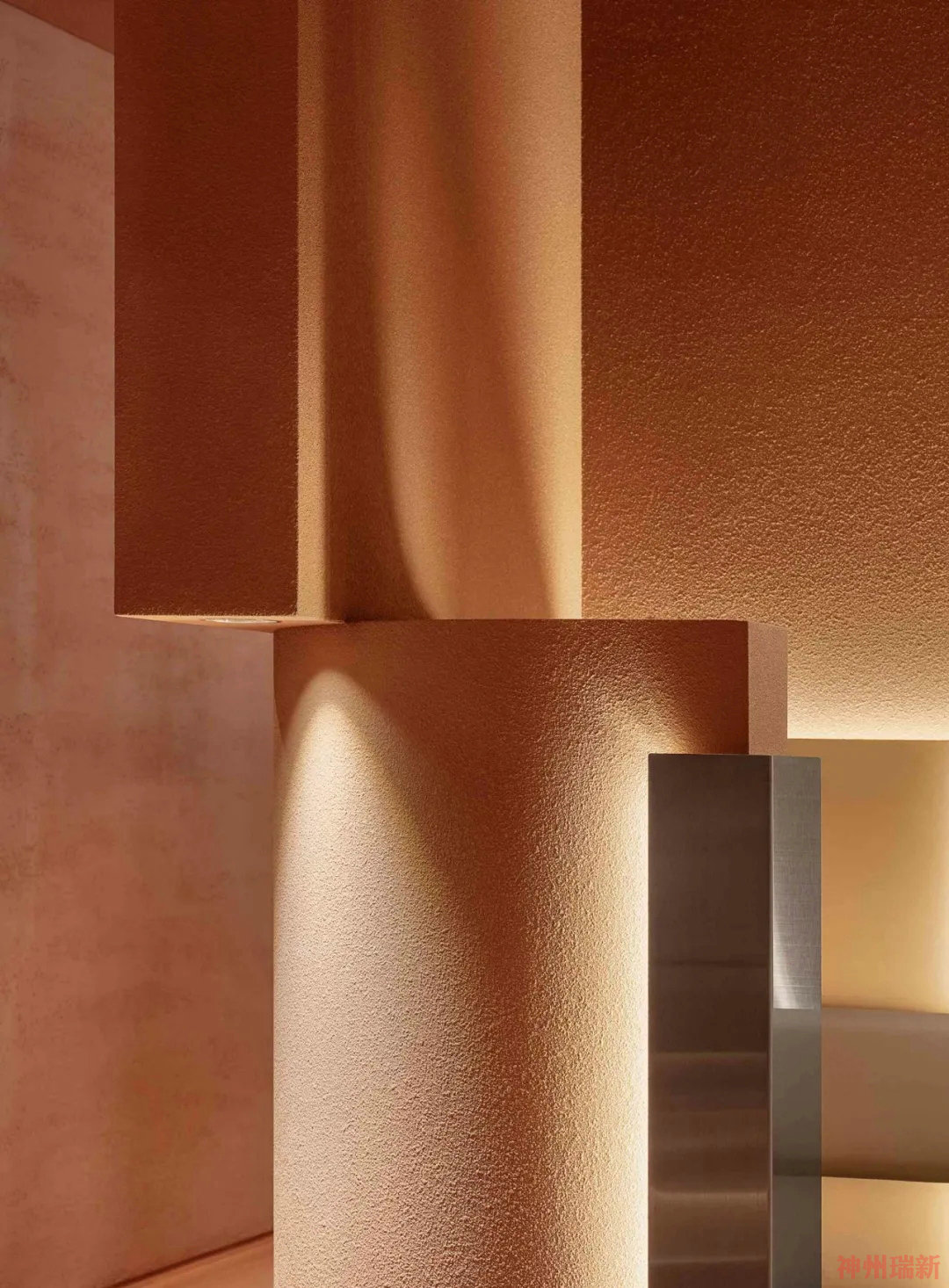 神州瑞新裝飾設計師以柔和開放的設計手法,使來的客戶感受到溫暖恬靜的效果,乳膠漆的顏色干凈勻稱,加上墻面的不對稱紋路,給人以大地般的質樸,起到柔和光線放松身心的效果。