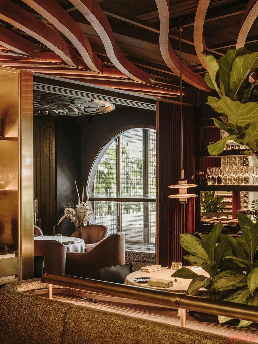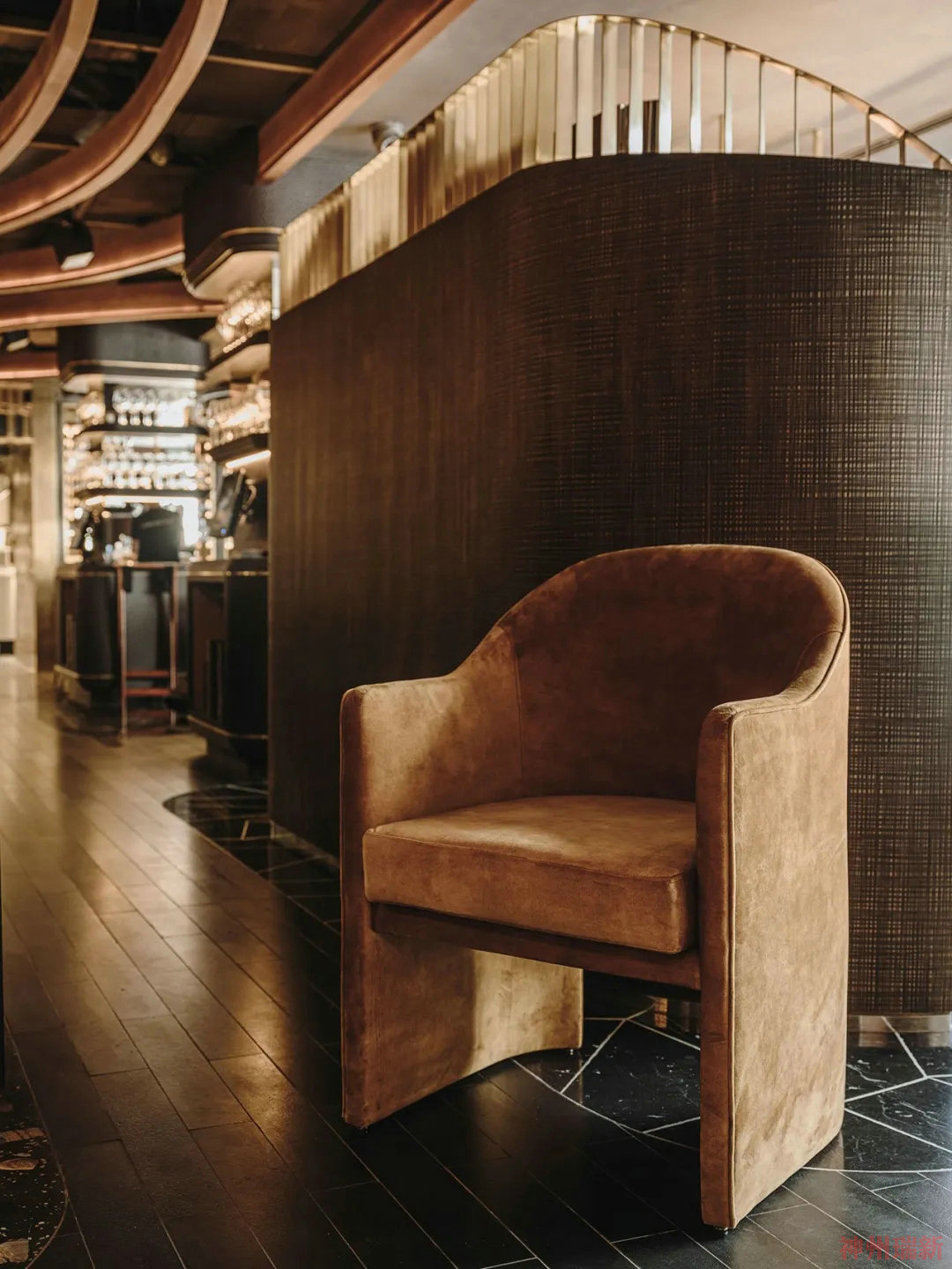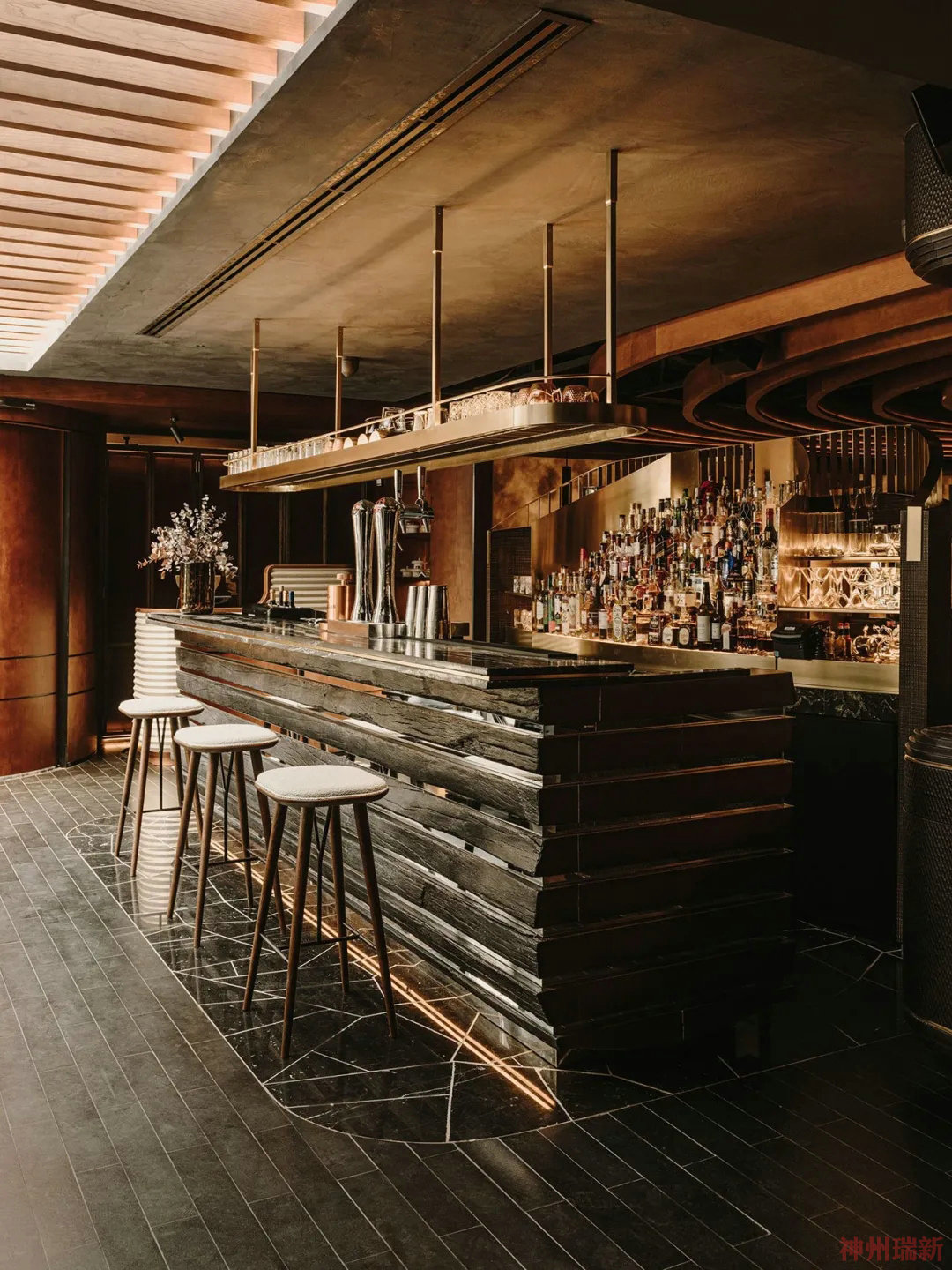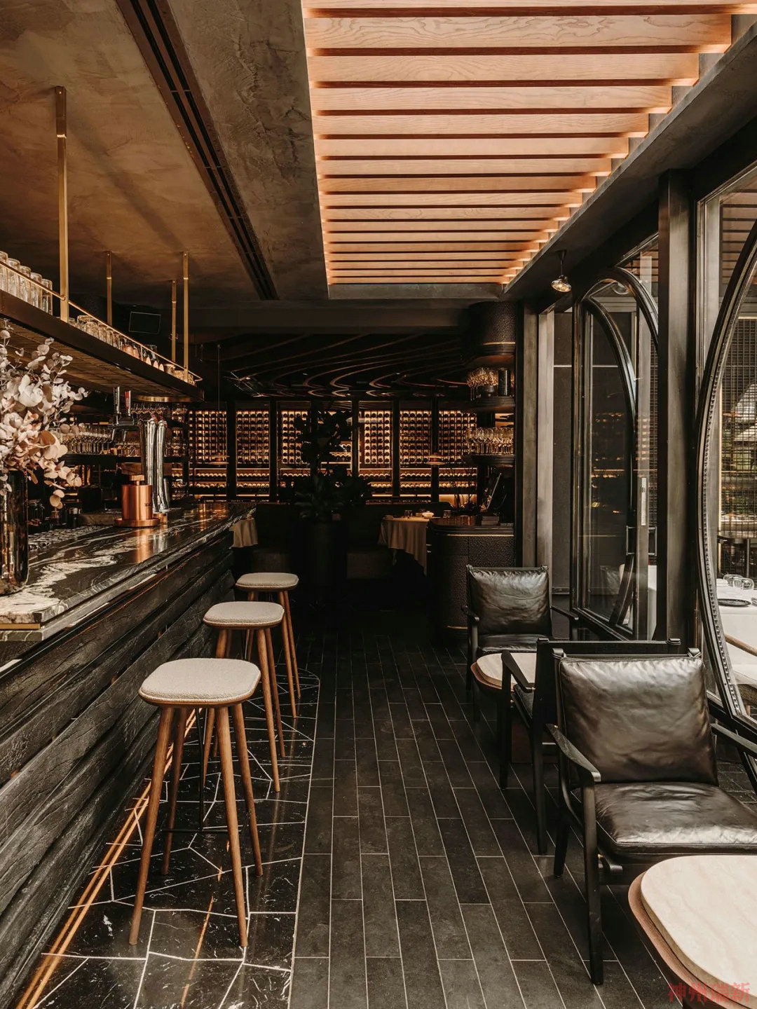 本案是餐飲空間裝修,牛排餐廳裝修設計的其中一個案例,整體設計風格用煙熏和木炭燒烤素材,展現餐廳的木材、石頭和火的原始審美。再經過拋光的巧妙設計,神州瑞新設計師采用原始真實的素材,并以重色和流暢紋理的泥土色調為基礎,使他們想起了在火爐上烹制肉類的原始體驗,而又沒有放棄其現代精致的標志感。