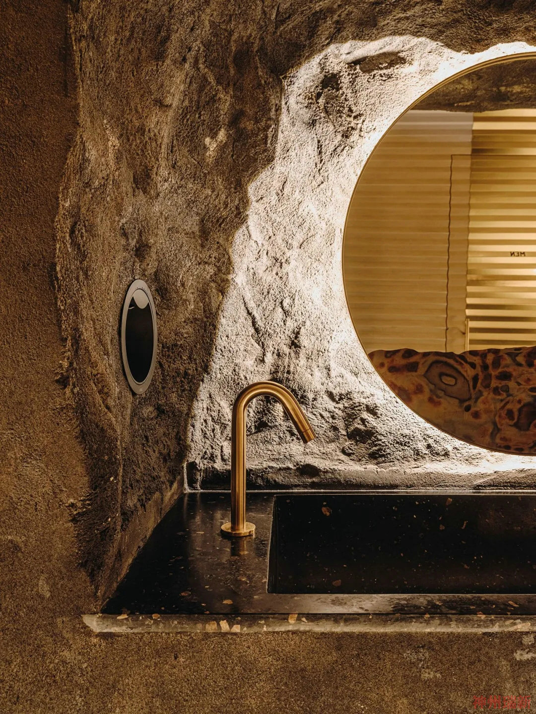 通過大廳進入餐廳,餐廳照明的激情效果,豐富的餐廳裝修區域、豐富的就餐空間,給客戶帶來不一樣的就餐新體驗。樸實的材料和原始材料為主,加上現代工藝的加工和潤色,打造出不一樣的餐飲空間裝修效果。空間內的餐飲座椅也是樸實無華,黑色花崗巖地板,大理石,以及黑色水磨石,整體的材質的組合,營造出炭火和餐飲的原始魅力。