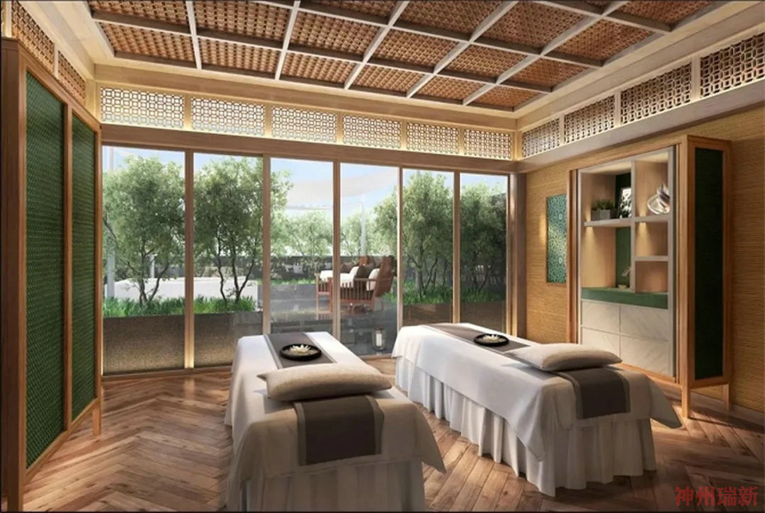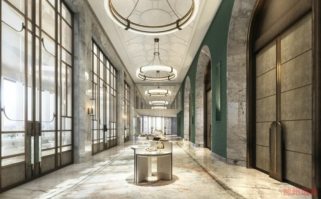 酒店內部空間的細致,是參考行業最高標準設計制作,整個酒店的每一件物品和軟裝配飾的擺設與裝飾細節,構造而成的華麗觀感,在感官上帶來現代美學藝術的享受。把酒店的功能不止局限在入住上,在神州瑞新看來就是大型休閑綜合服務體系,這種酒店裝修設計思路在本案中淋漓盡致的發揮了出來。