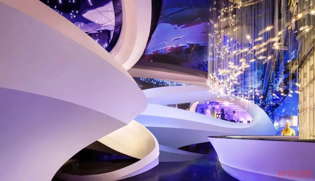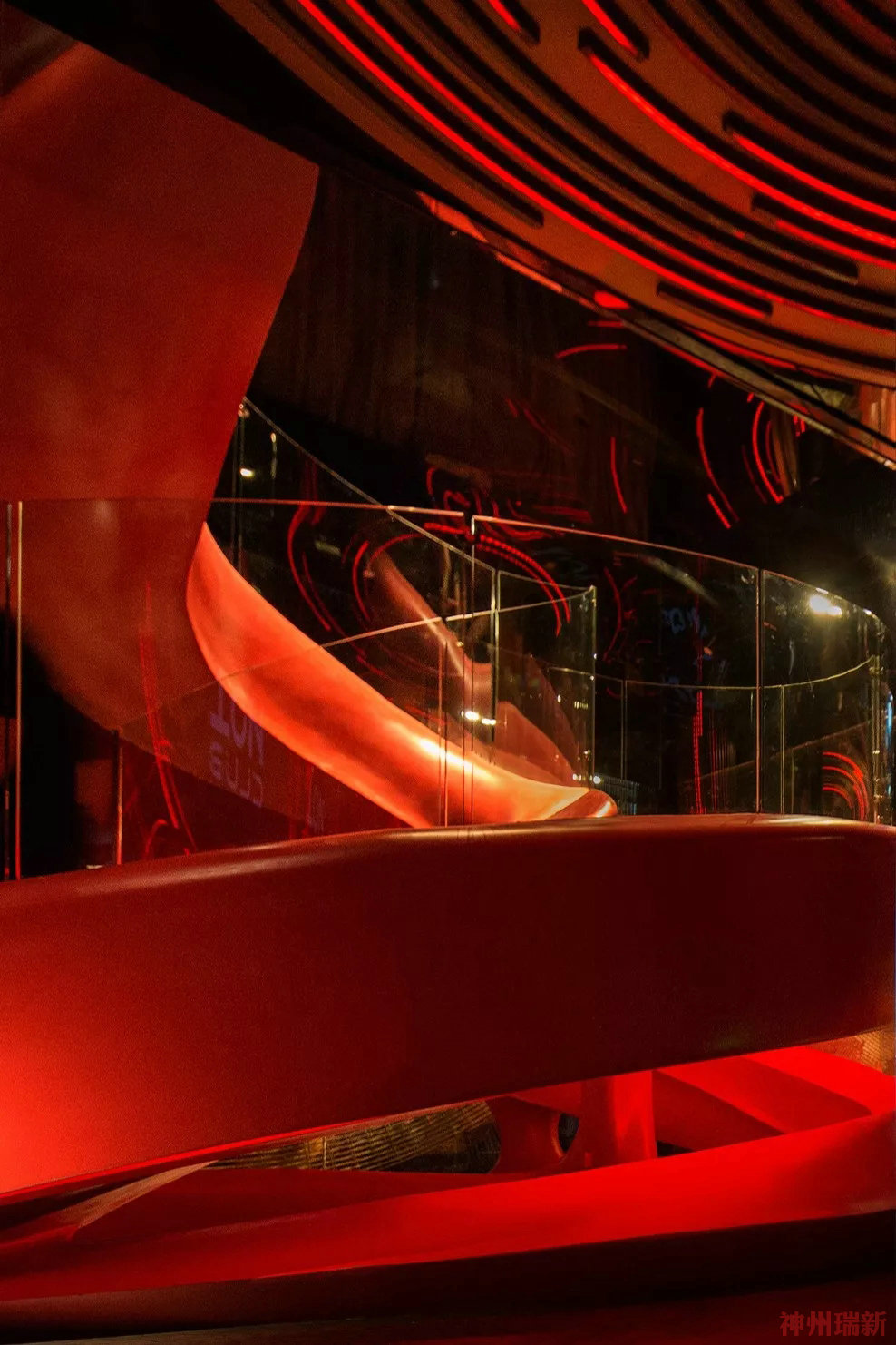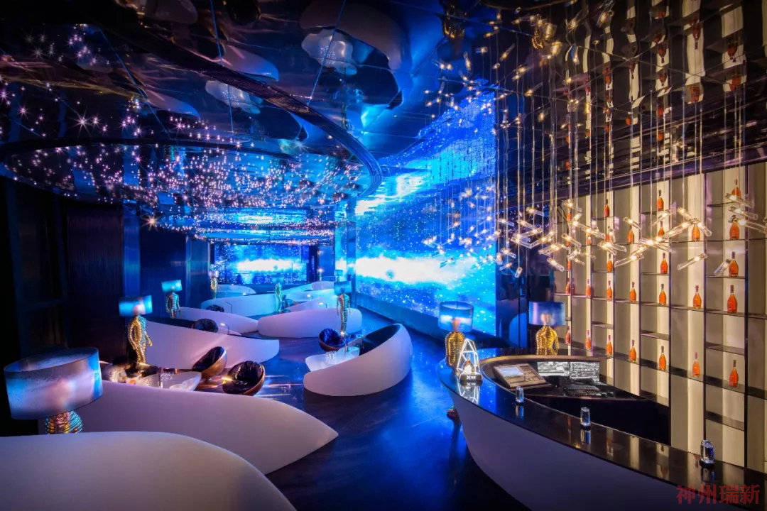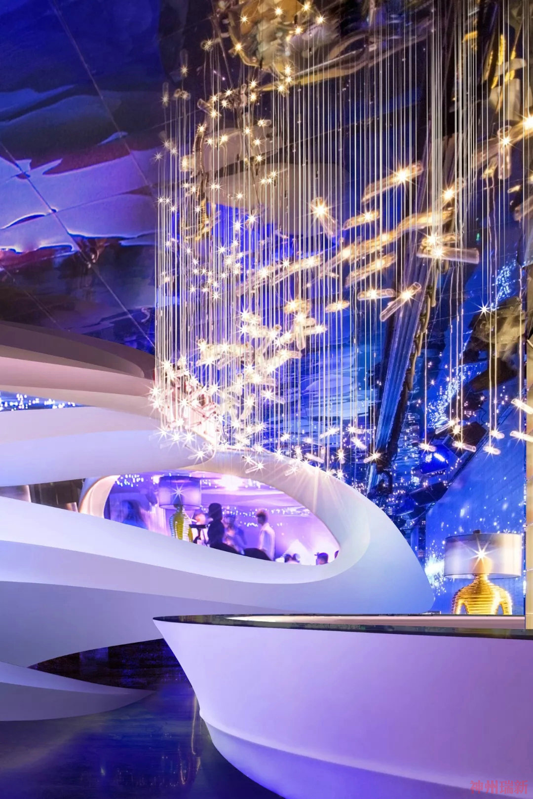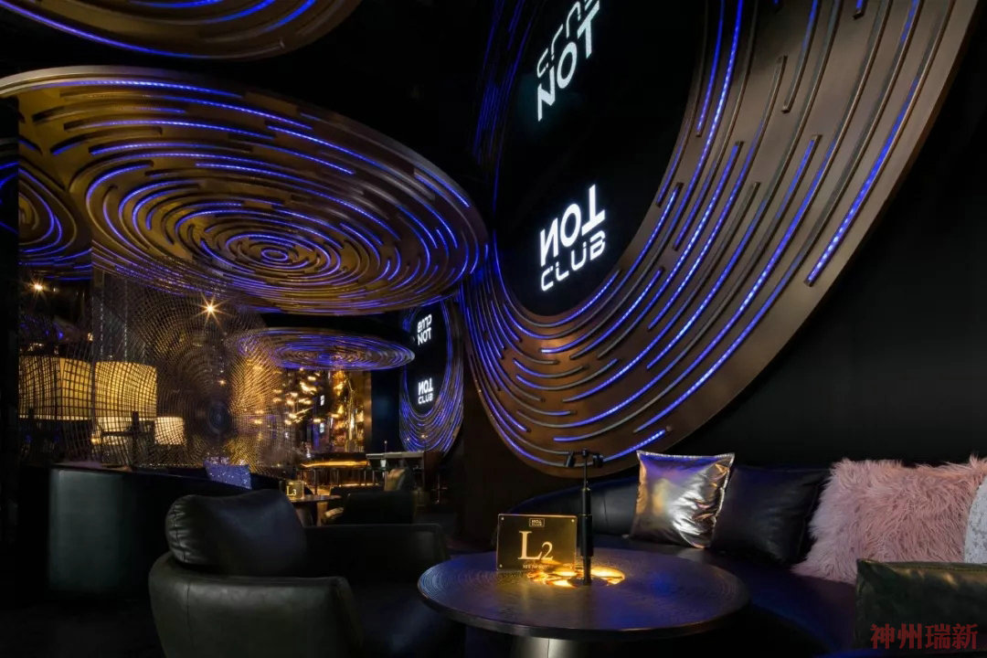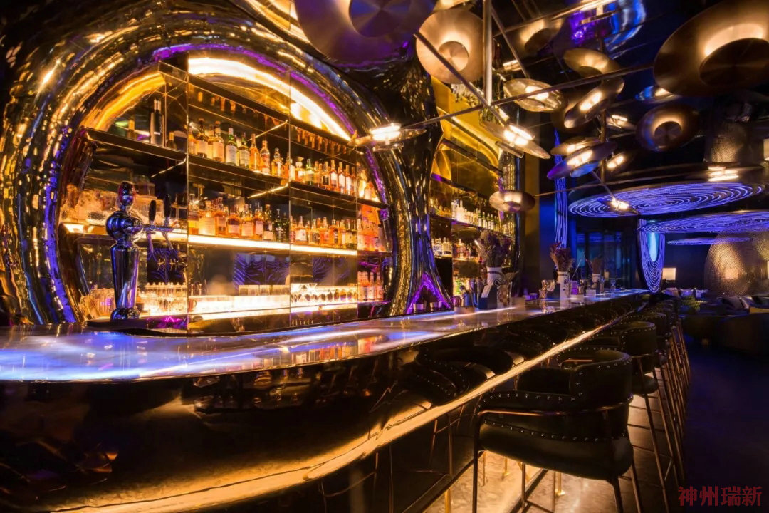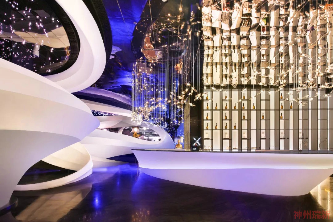 神州瑞新運用流線型的設計元素,配合獨特的樂符,讓人流連忘返,鬧中取靜。酒吧空間格局穩定的幾何線條結構,形成明顯反差,燈光、視頻、音樂及酒水色彩組合在一起,不斷偷襲、不斷進攻于人的各自感官感受,遠離浮躁,忽如一夜春風來,千樹萬樹梨花開。
