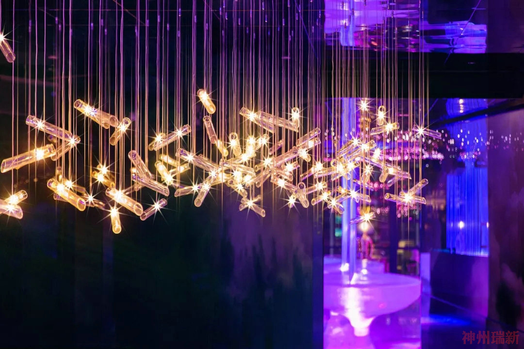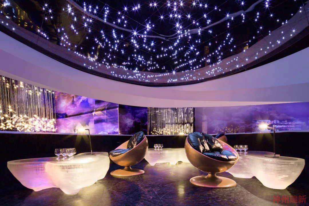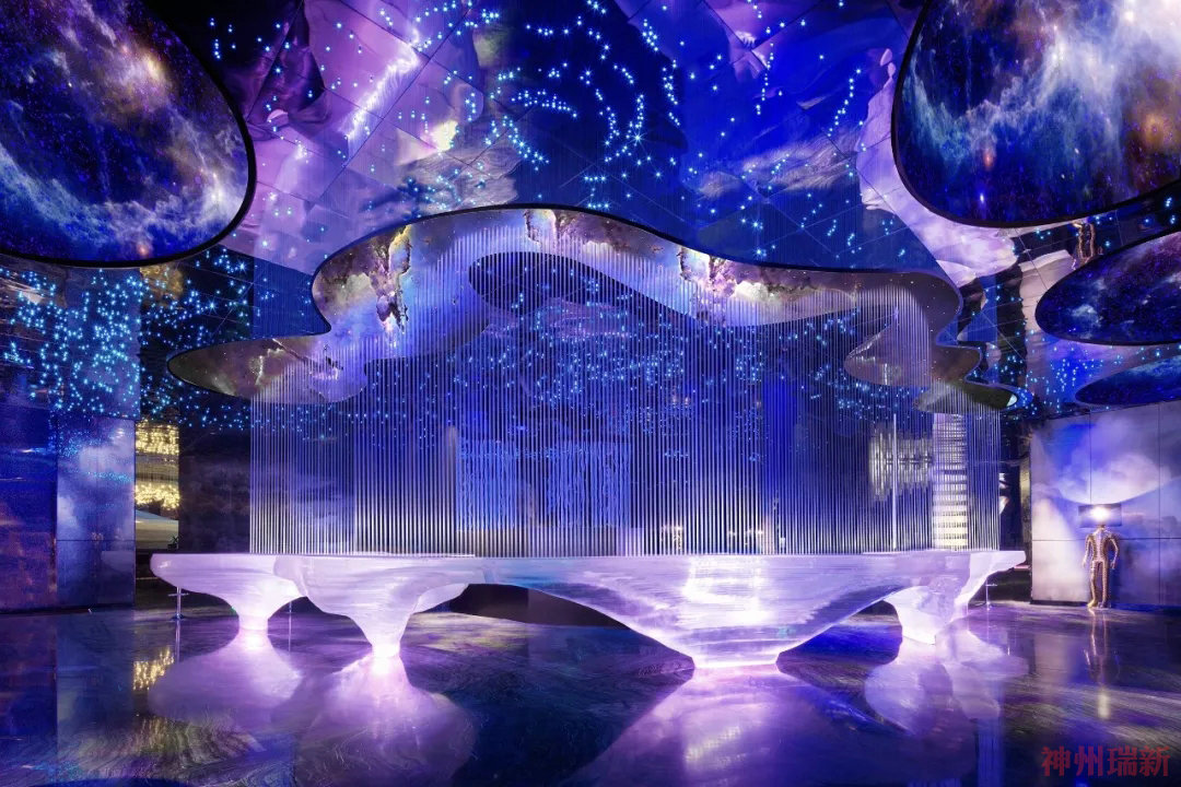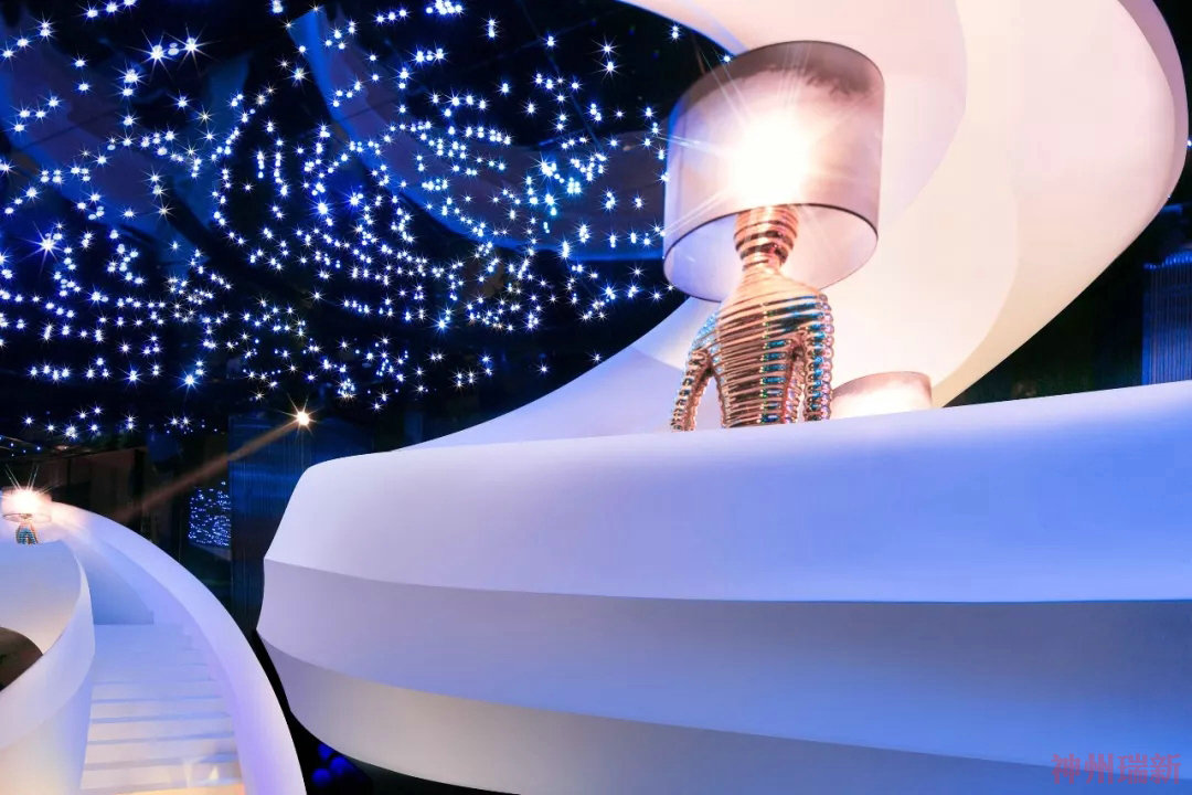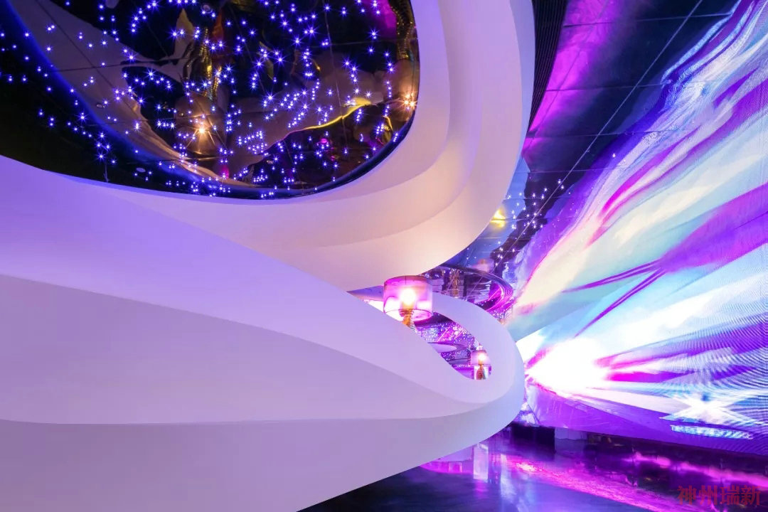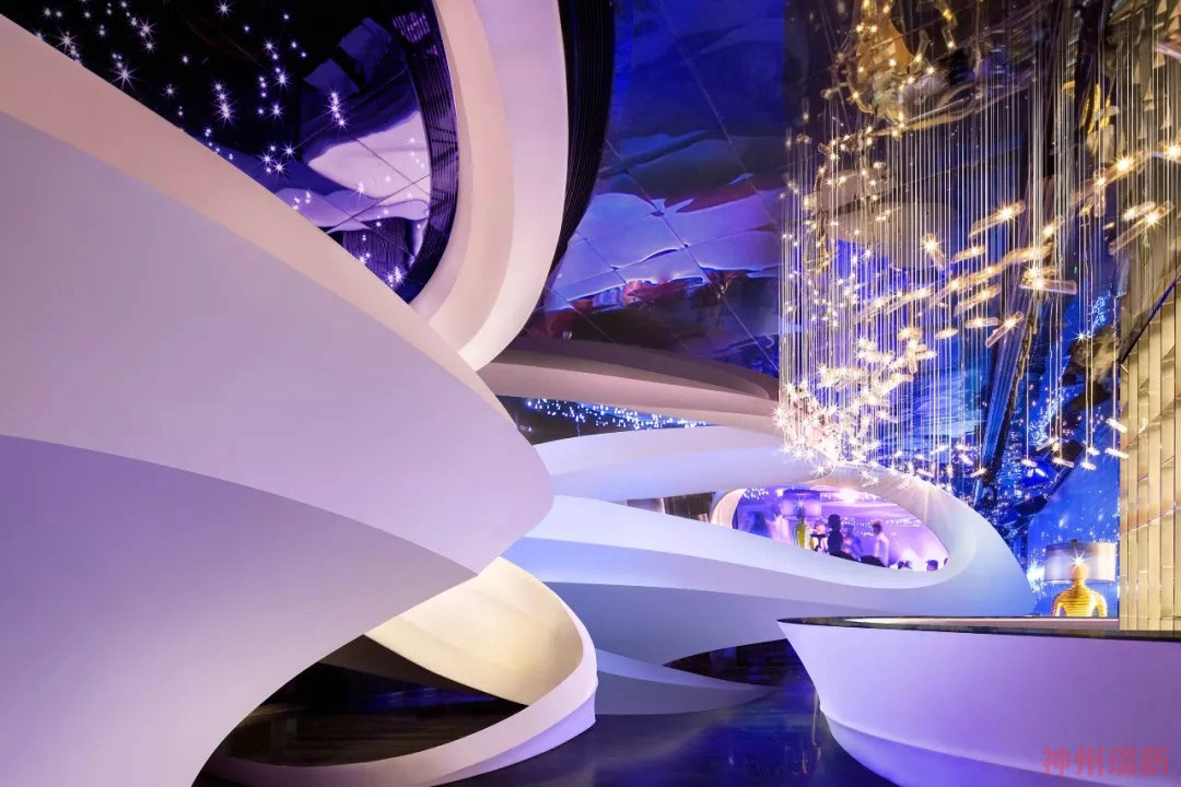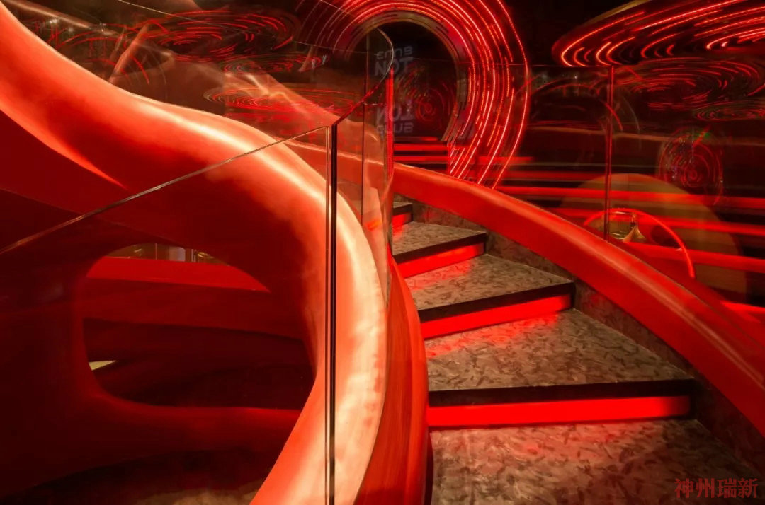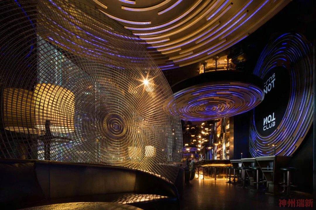 神州瑞新運用流線型的設計元素,配合獨特的樂符,讓人流連忘返,鬧中取靜。酒吧空間格局穩定的幾何線條結構,形成明顯反差,燈光、視頻、音樂及酒水色彩組合在一起,不斷偷襲、不斷進攻于人的各自感官感受,遠離浮躁,忽如一夜春風來,千樹萬樹梨花開。