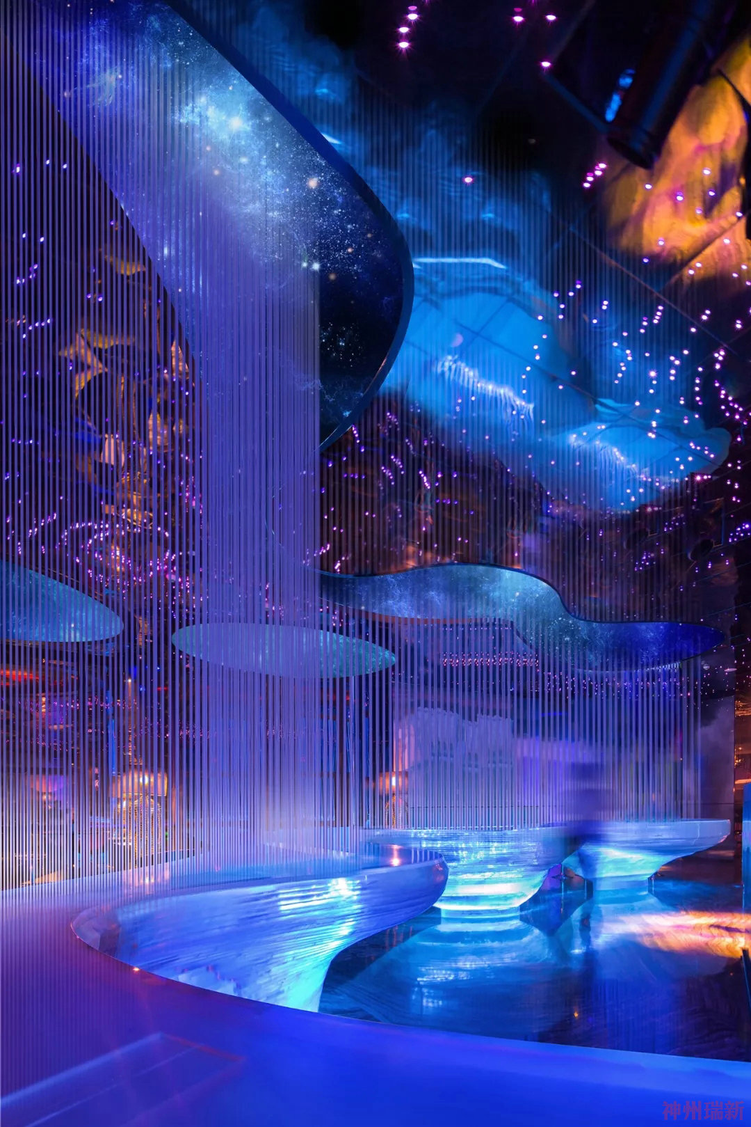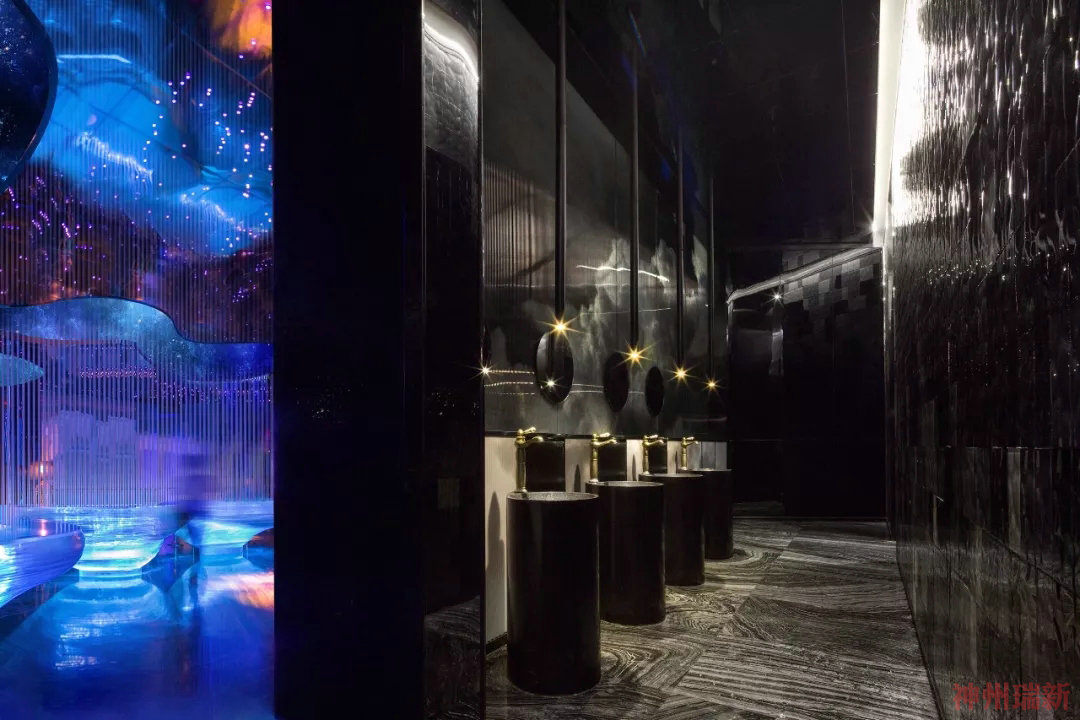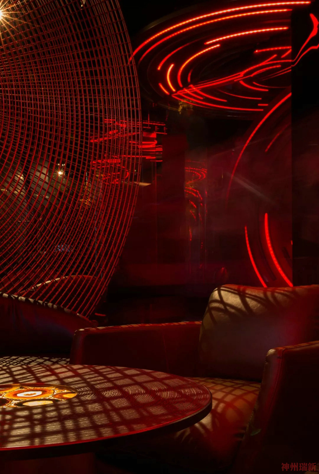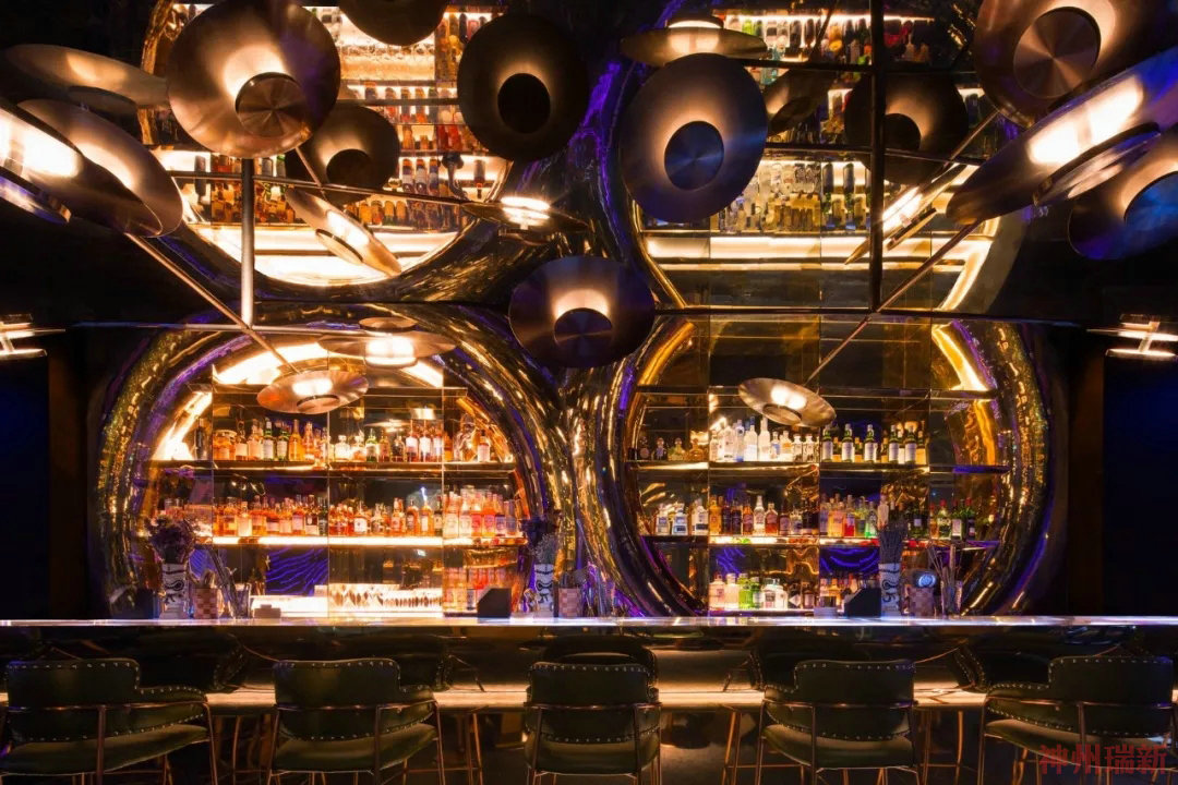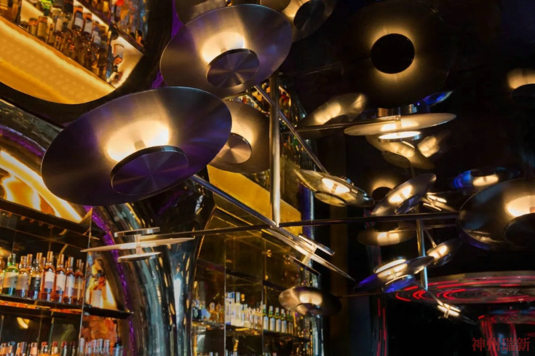 本案中這2個案例,神州瑞新設計師提取音樂元素、中國風感、前衛探索作為貫穿整個酒吧裝修的核心元素,用流暢的設計手法對原有的空間進行重新定義,創新科技元素的設計,摒棄了傳統酒吧裝修效果風格的沉悶感,身臨其境感覺身心煥然一新,音符與節奏降落到酒吧每一個角落,帶給聽覺與視覺的連續沖擊的效果。