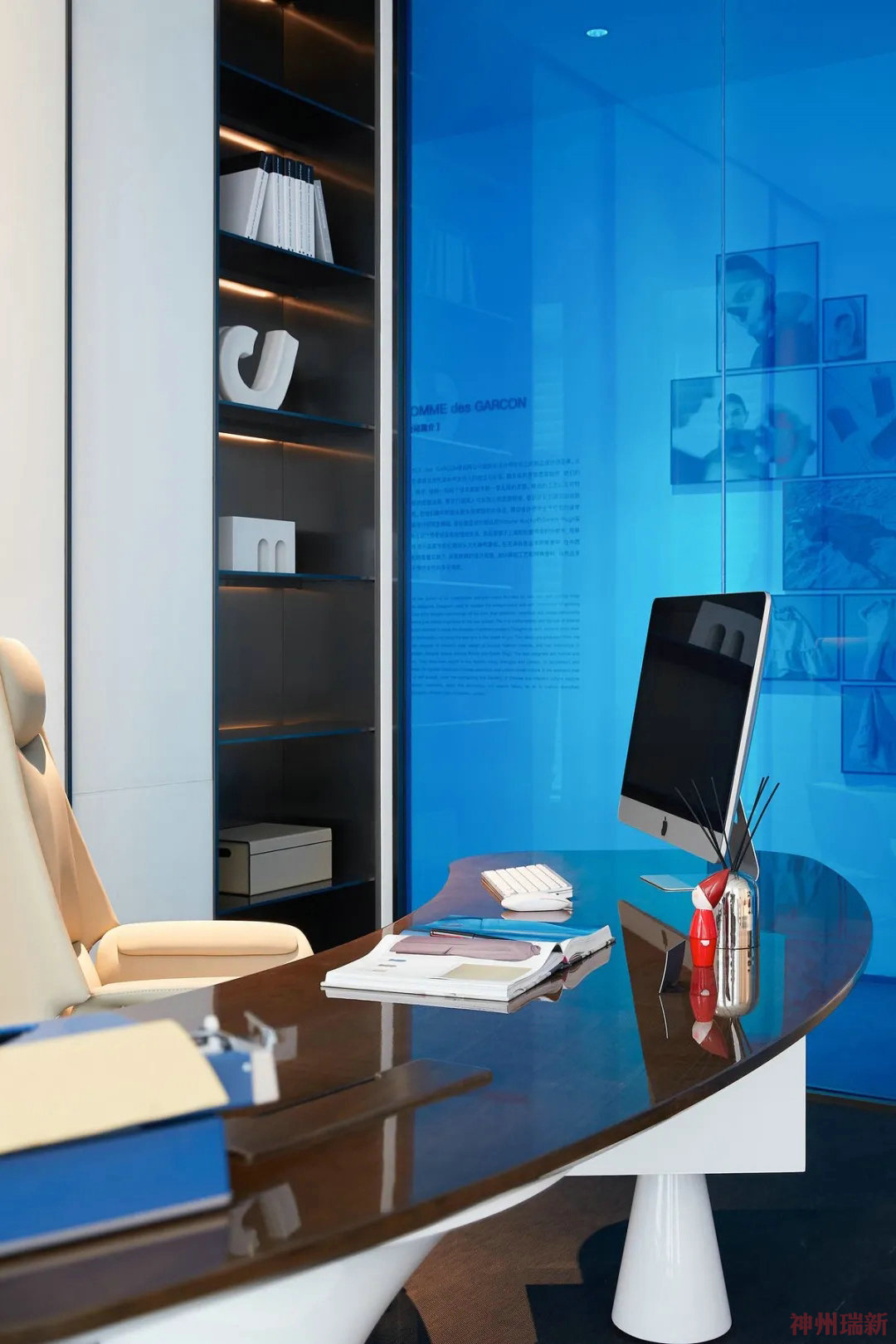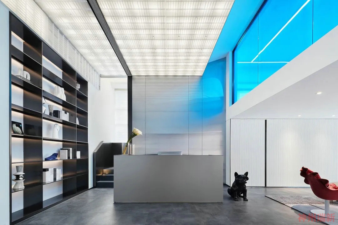本案中是辦公室裝修案例,辦公空間設計的主要理念是以人為本,裝修出實用的辦公室裝修效果,由于辦公室位于高端的寫字樓中,設計師將辦公空間裝修風格偏重國際化元素,主要功能是商務辦公、社交及休閑等,設計師主攻人性化布局的元素,對待每一個細節都精益求精。辦公室整體色彩藍白相應、灰色底色打底,視覺效果具備沖擊力,展現時尚新潮與藝術氣息的場景。