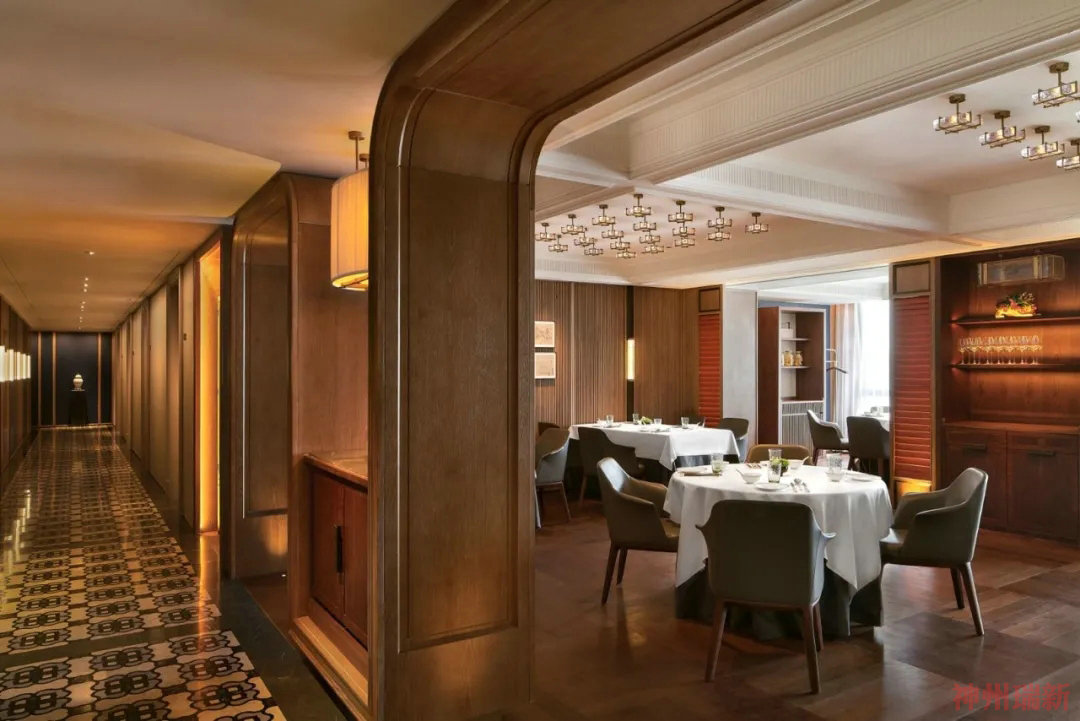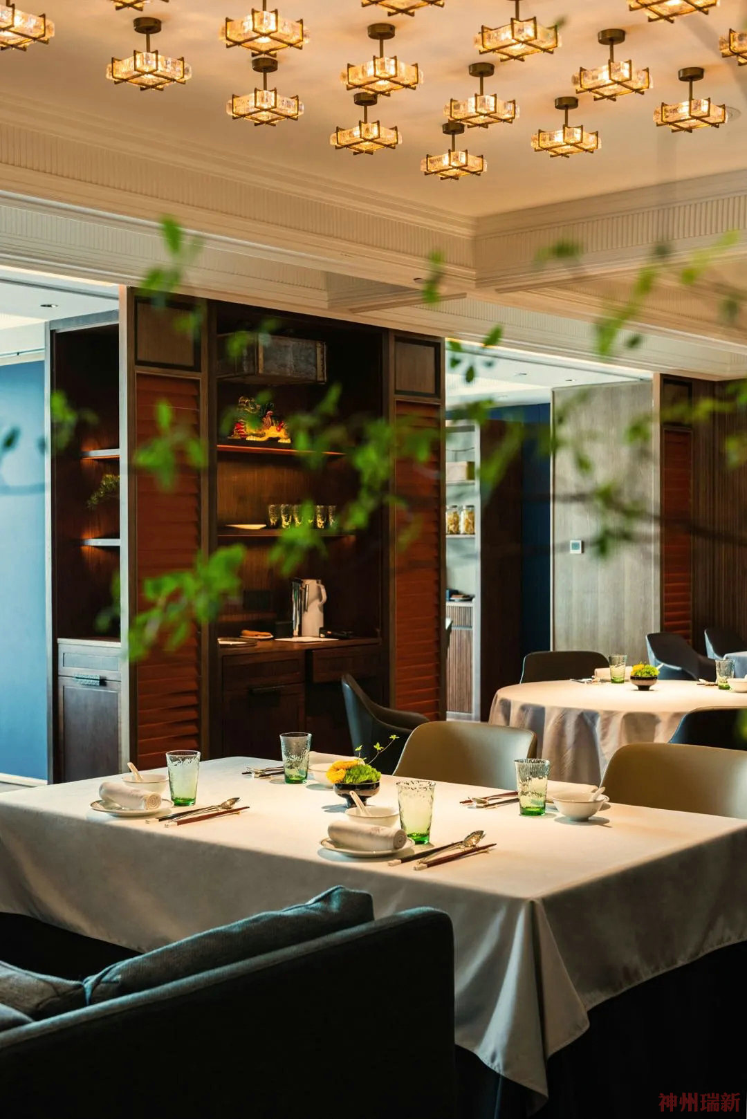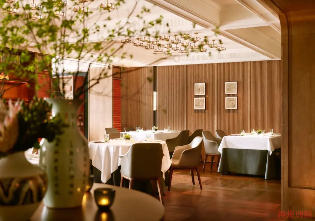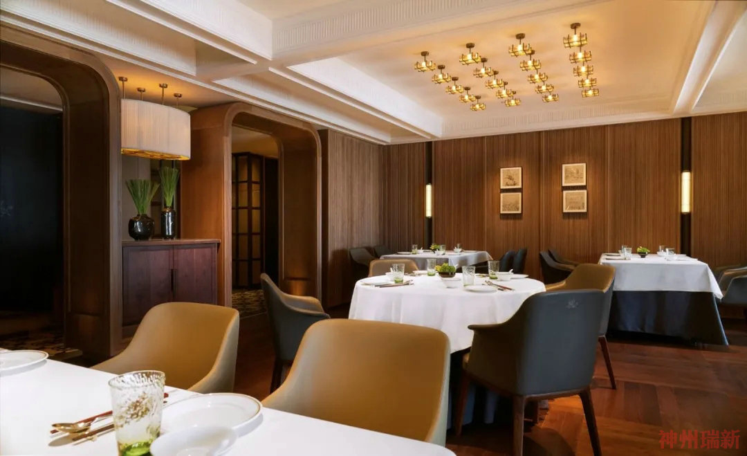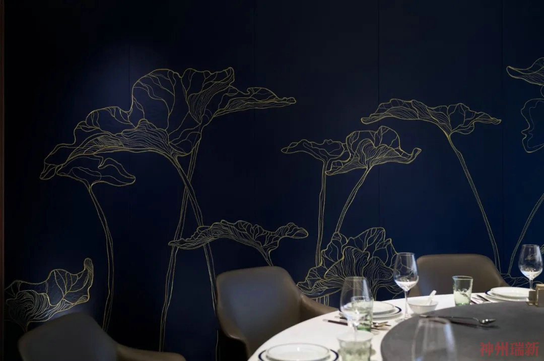 餐飲空間裝修設(shè)計(jì)風(fēng)格保留了中國風(fēng)的元素,深色的大理石材,燈光的點(diǎn)綴,營造出曲徑通幽處的意境,橡木地板的鋪設(shè),黃銅的軟裝裝飾,周圍的玻璃幕墻的獨(dú)特格局,遙呼相應(yīng),彰顯了空間的祥和安靜的感覺。坐在餐廳的窗邊,遙望窗外的自然風(fēng)情,餐飲空間的氣氛頓時(shí)感覺非常的溫和,設(shè)計(jì)師在細(xì)節(jié)上保留質(zhì)感的效果,屏風(fēng)、照明系統(tǒng)、地面、墻面、門窗的各種細(xì)節(jié)的掌控,讓空間利用本身的魅力,不需要多余的飾品的裝飾,已經(jīng)充滿質(zhì)感和干凈整潔的效果。現(xiàn)代美學(xué)展示實(shí)物的魅力,比如木質(zhì)材料的溫厚、精致的餐具、文藝的門窗,與空間中的燈光完融合,設(shè)計(jì)師本意就是營造婉約和詩意的氛圍,讓客人用餐的同時(shí)重點(diǎn)放在食材和個(gè)人內(nèi)心的享受。