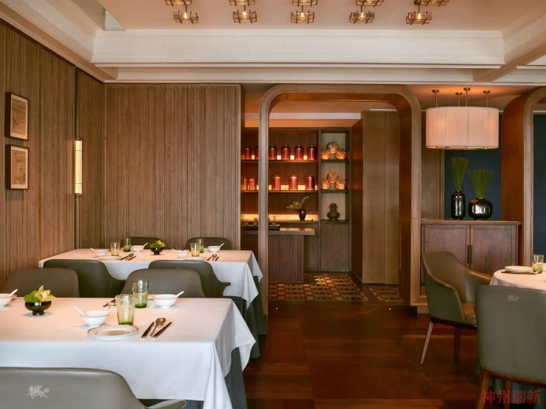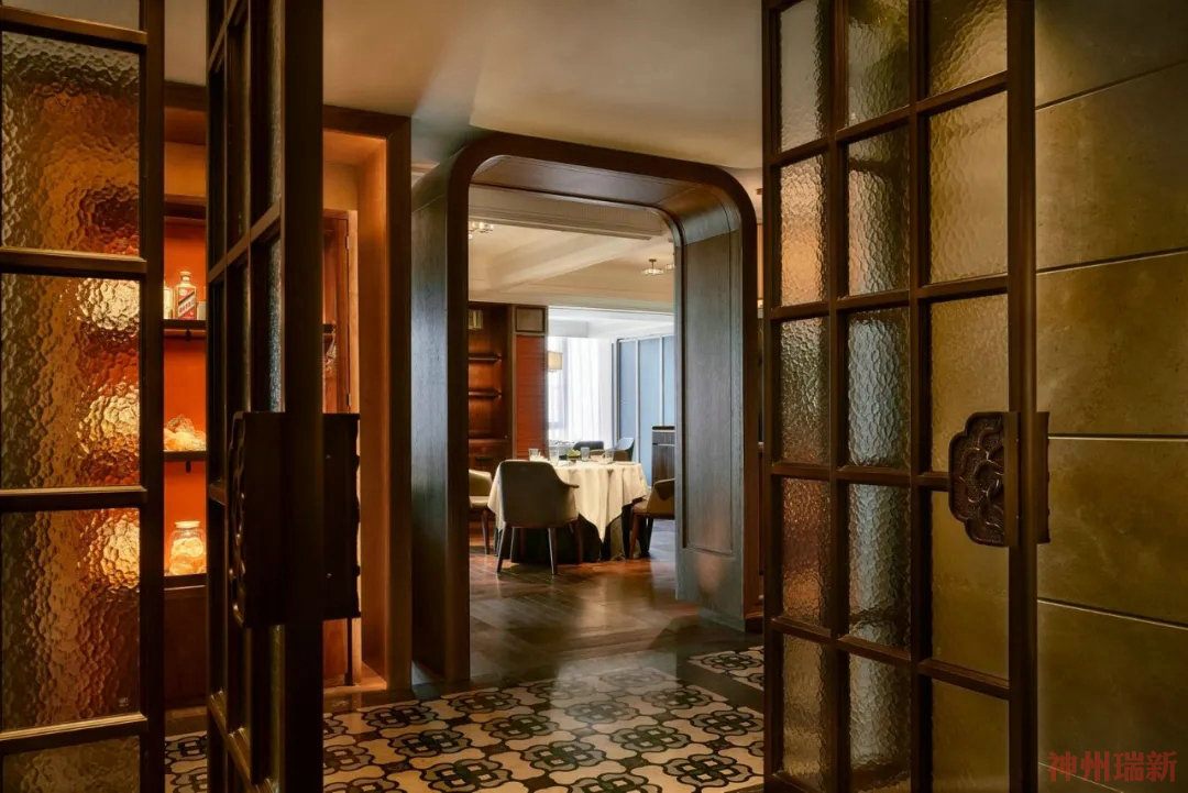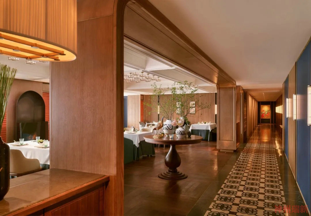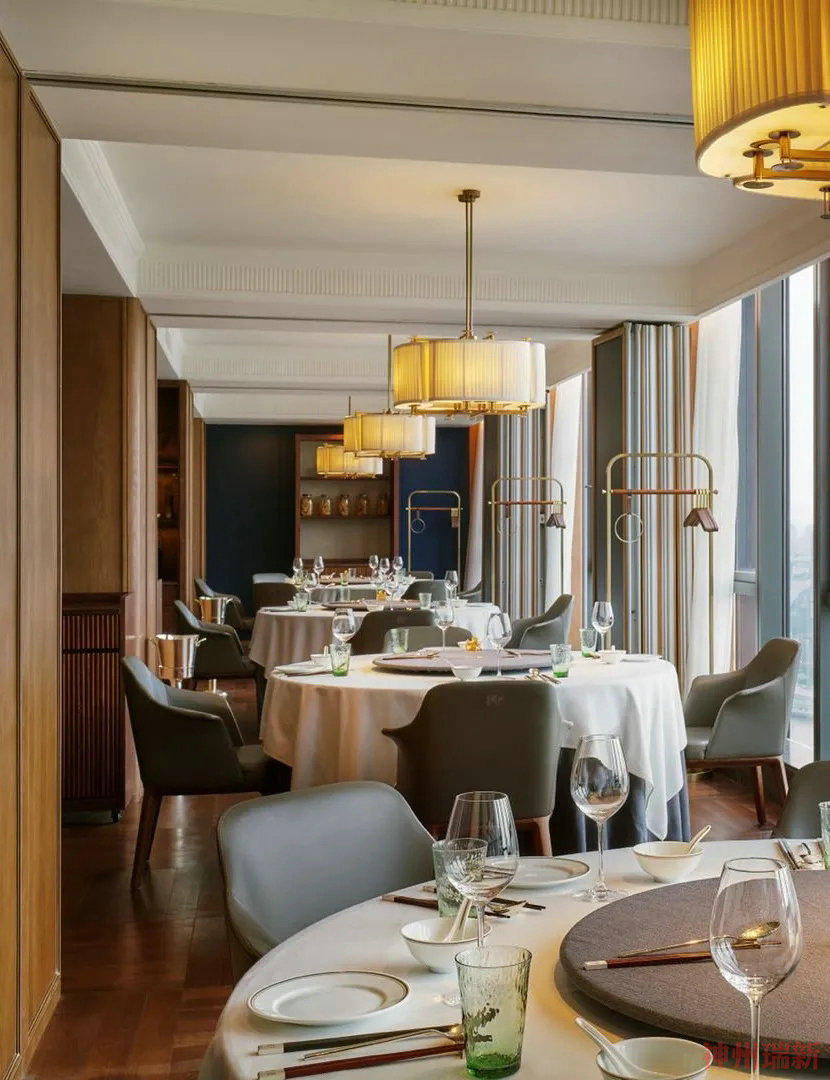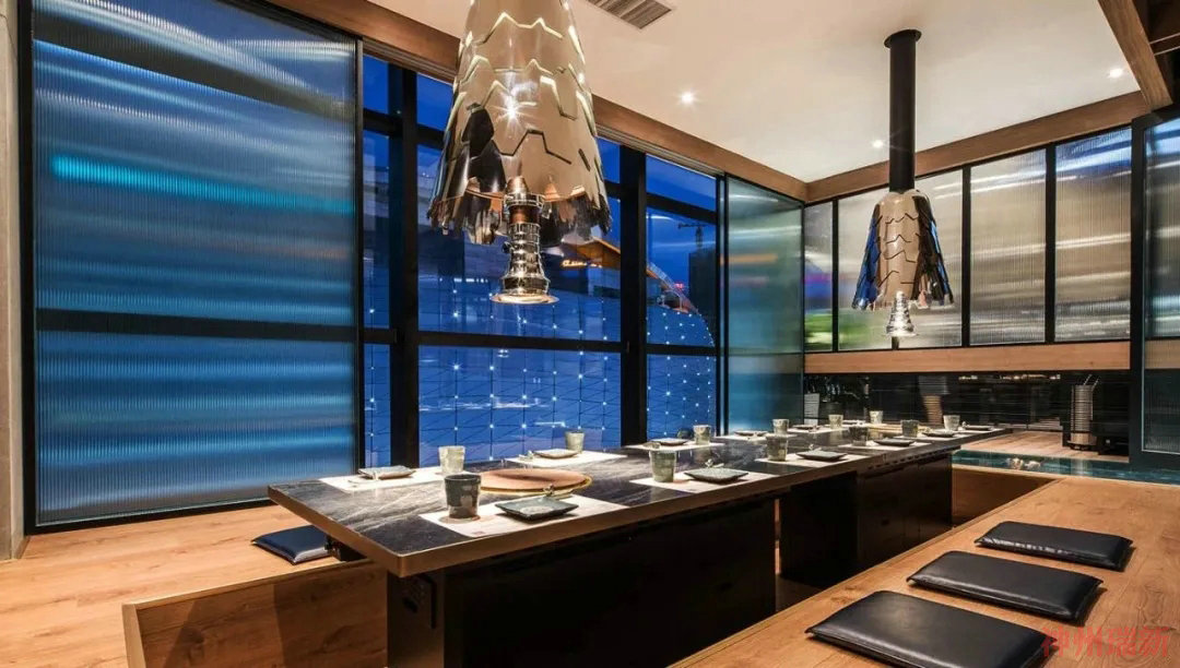 餐飲空間裝修設(shè)計(jì)風(fēng)格保留了中國風(fēng)的元素,深色的大理石材,燈光的點(diǎn)綴,營造出曲徑通幽處的意境,橡木地板的鋪設(shè),黃銅的軟裝裝飾,周圍的玻璃幕墻的獨(dú)特格局,遙呼相應(yīng),彰顯了空間的祥和安靜的感覺。坐在餐廳的窗邊,遙望窗外的自然風(fēng)情,餐飲空間的氣氛頓時(shí)感覺非常的溫和,設(shè)計(jì)師在細(xì)節(jié)上保留質(zhì)感的效果,屏風(fēng)、照明系統(tǒng)、地面、墻面、門窗的各種細(xì)節(jié)的掌控,讓空間利用本身的魅力,不需要多余的飾品的裝飾,已經(jīng)充滿質(zhì)感和干凈整潔的效果。現(xiàn)代美學(xué)展示實(shí)物的魅力,比如木質(zhì)材料的溫厚、精致的餐具、文藝的門窗,與空間中的燈光完融合,設(shè)計(jì)師本意就是營造婉約和詩意的氛圍,讓客人用餐的同時(shí)重點(diǎn)放在食材和個(gè)人內(nèi)心的享受。