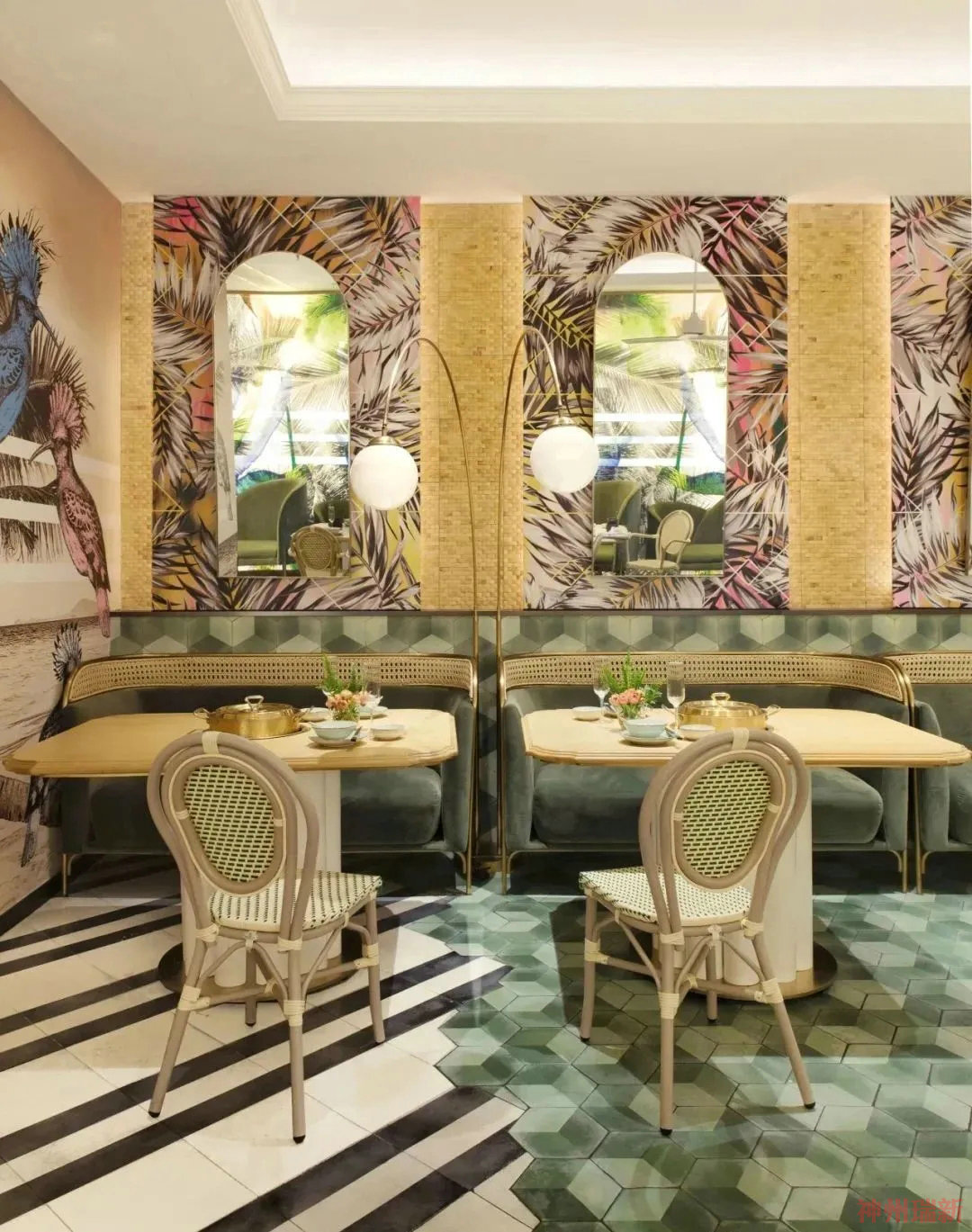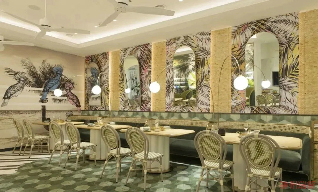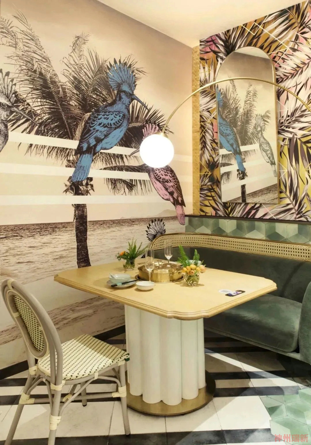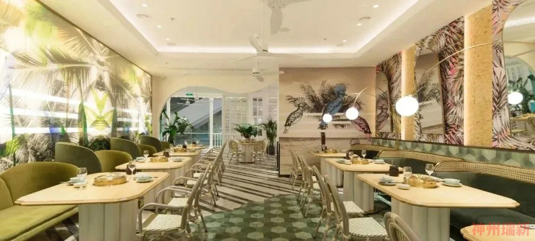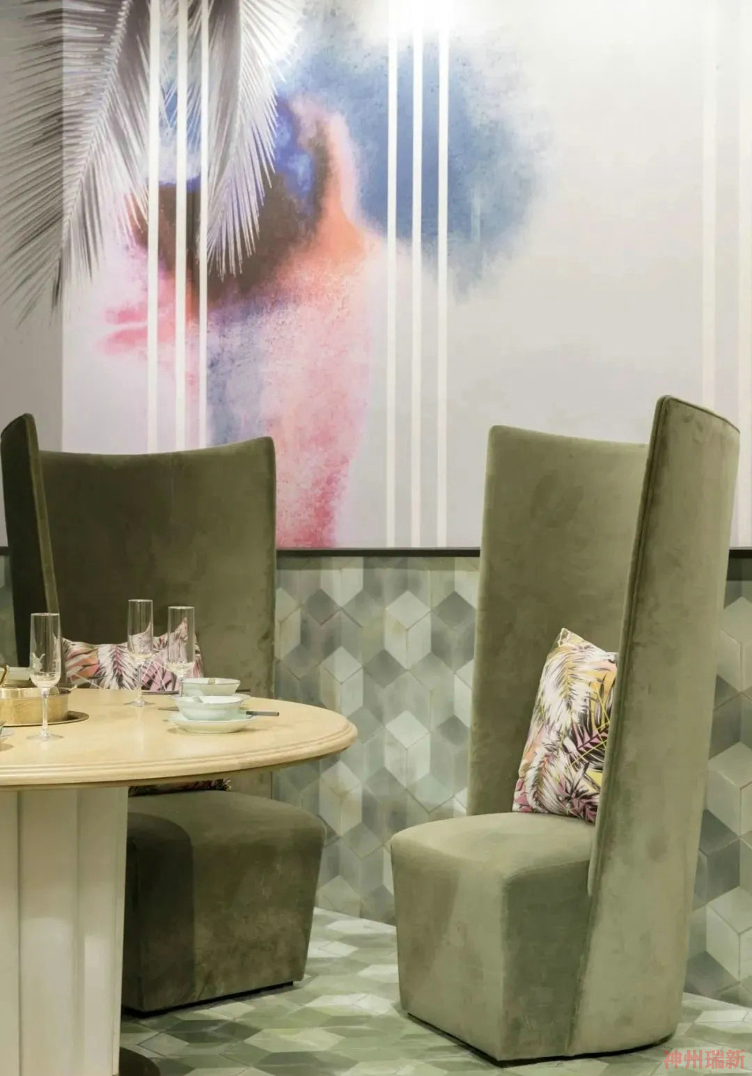 本案展示的是火鍋店裝修設計案例,神州瑞新設計師從火鍋的本質“椰子”中為元素展開裝修設計,椰子火鍋的發源地位于海南,設計師根據當地的民族風俗與現代飲食美學的結合,用真實的熱帶植物為裝飾,呈現了當地的真實的本土飲食文化。火鍋店的主題風情表達的已經夠清晰,但在空間內的辦公家具和餐飲桌椅融入了很多的現代的風格,火鍋店裝修設計就餐區的時候,采用青色的背景,椰子的色彩,帶給人以清新的感覺,椰樹葉的圖案元素的運用,讓人懷舊而向往。
