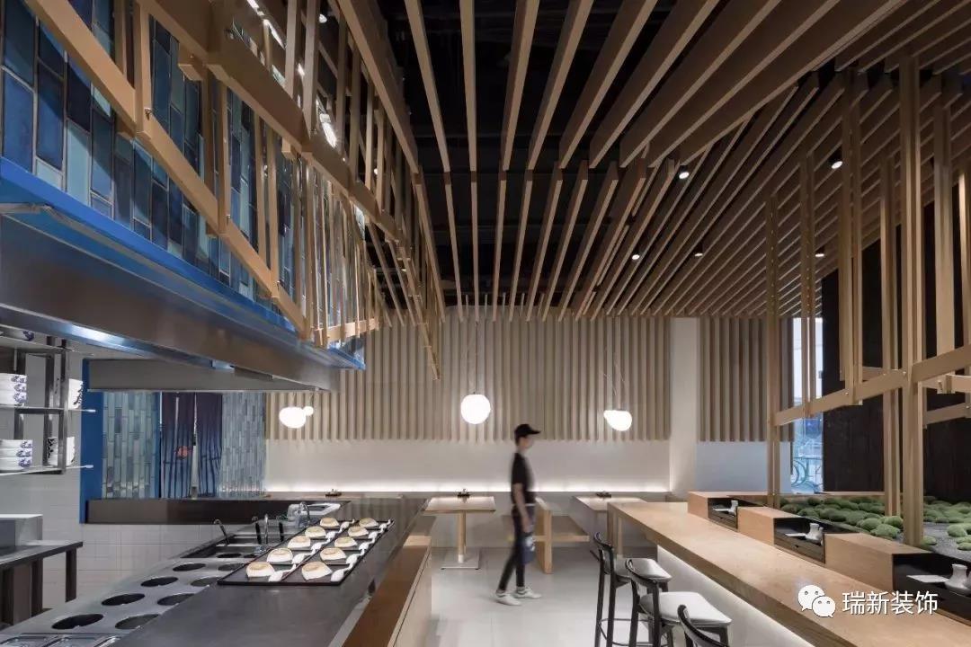 不同的是廚房與明廚相互隱現,橫簾內熱火鮮料地煮面使得食客多了一份期待,布簾外的明廚,廚師精湛技藝的展示,使得食客與實物和烹飪者之間多了更多的互動,或欣喜,或驚羨。