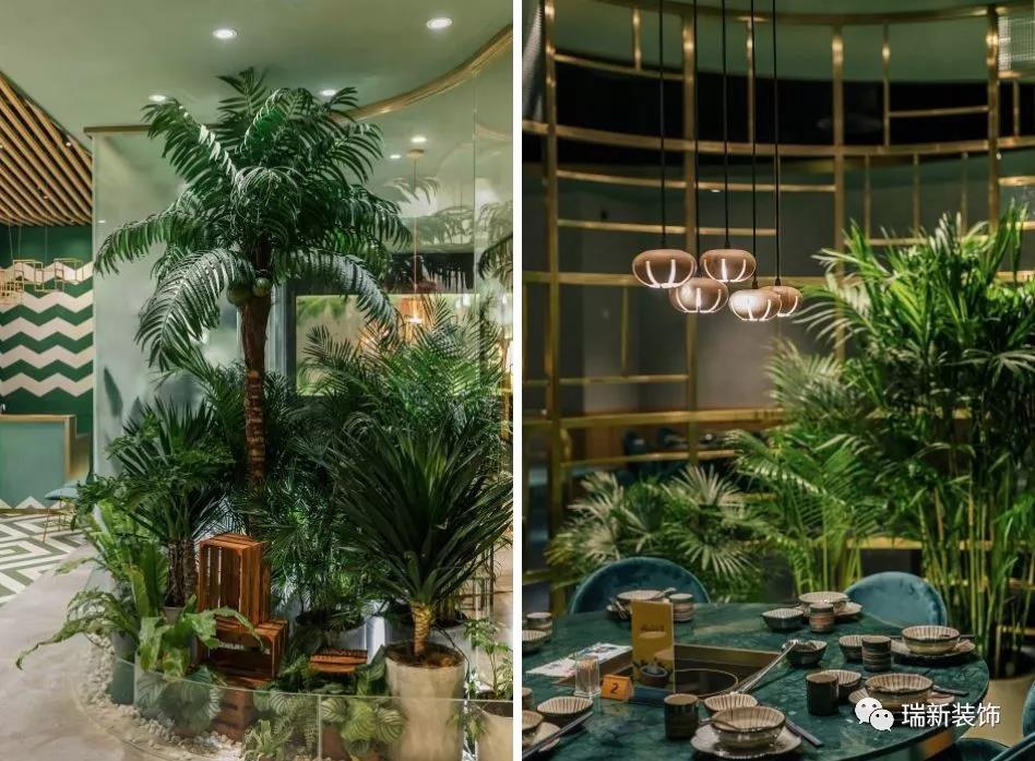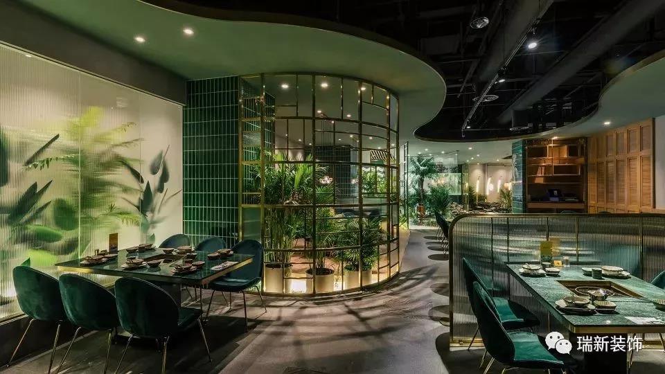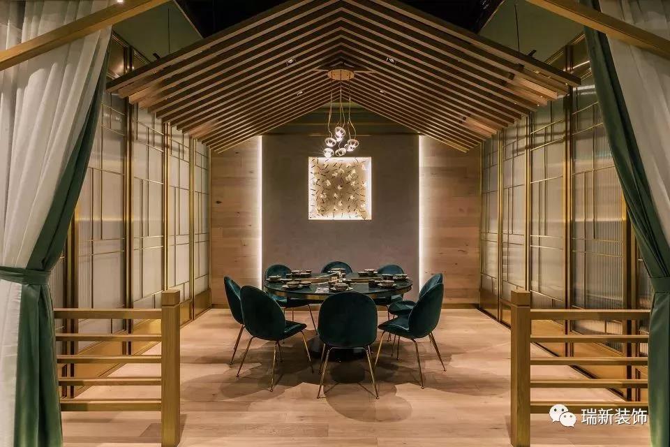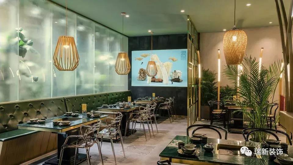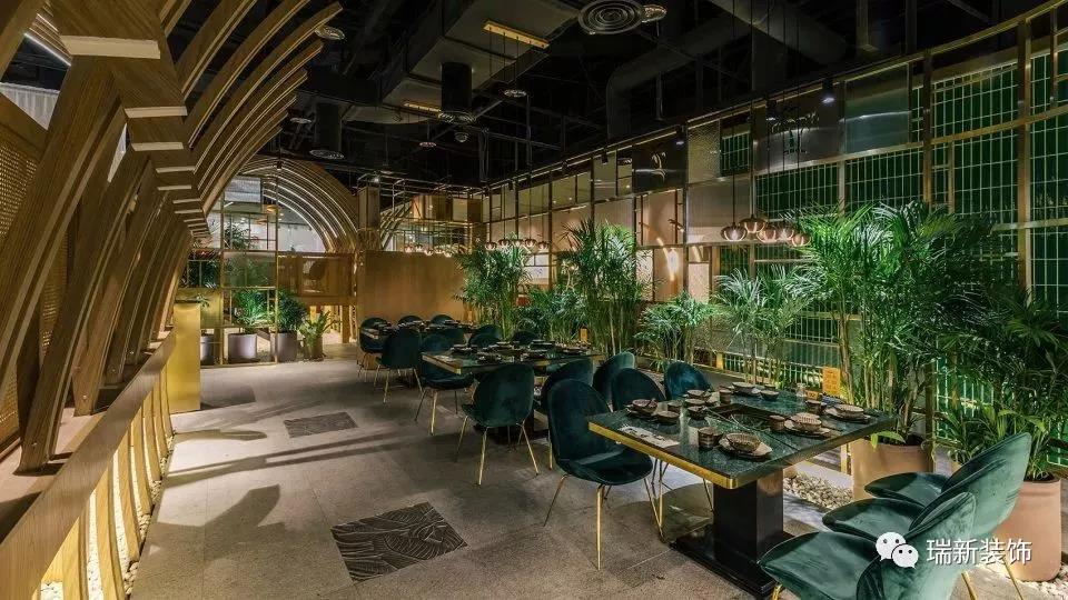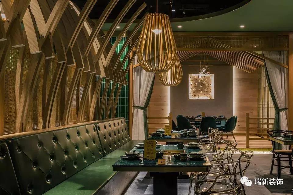 從空間設計上,瑞新裝飾借用東南亞當地的元素,運用現代設計手法的改造,呈現一個全新氣質的潤SEASON。 在東南亞,由竹條和茅草搭建的屋架隨處可見,于是我們利用原空間層高相對較高的優勢,將東南亞標志性的茅草屋通過現代設計的拆解和改造,在中心區域設置了兩個改良版的“屋中屋”作為獨特的半封閉包間,并利用本身的高低差,在“屋中屋”的周邊設置了相應的就餐座位區,我們希望創造多種用餐空間的區域。客人在登上“屋中屋”后也可環繞俯瞰周邊。