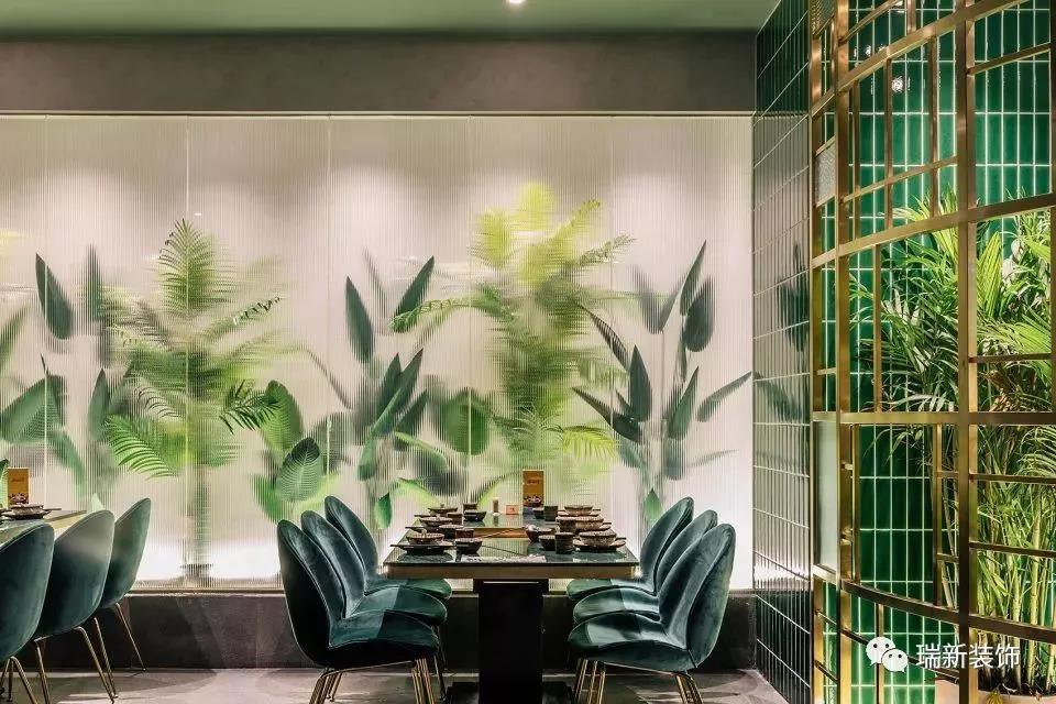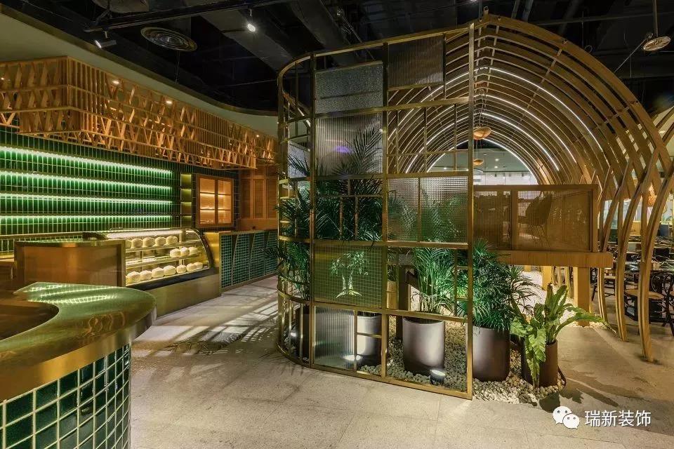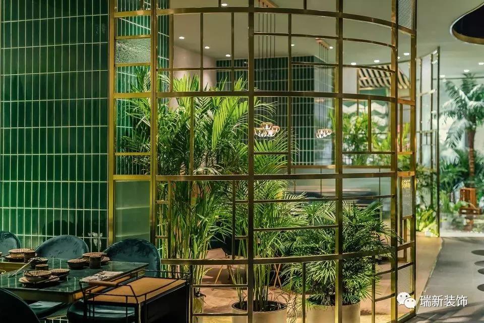 我們希望在整個用餐的空間,可以有效的處理人和景觀之間的互動關系。空間內將植物與定制金屬隔斷形成特有的裝飾背景,并有效的將客用流線和送餐服務流線區分開。