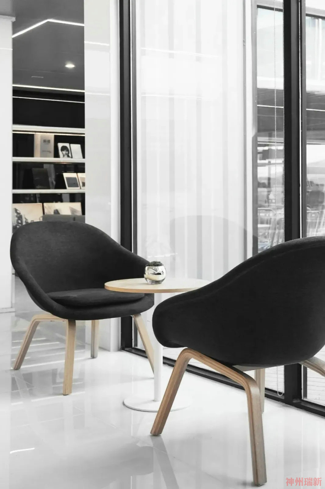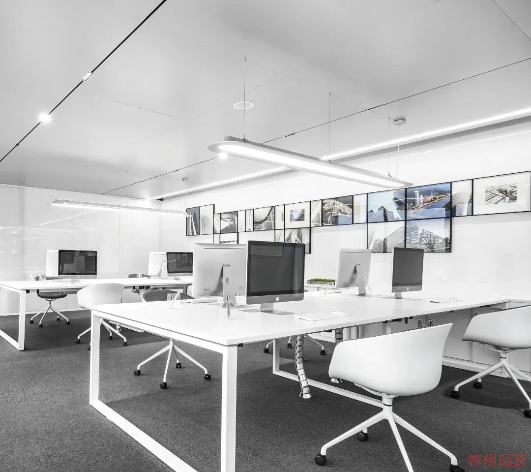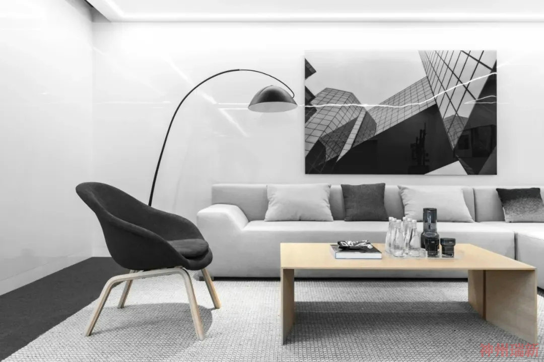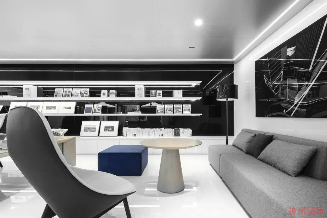 神州瑞新給大家介紹一個黑白經典的辦公室裝修設計案例。