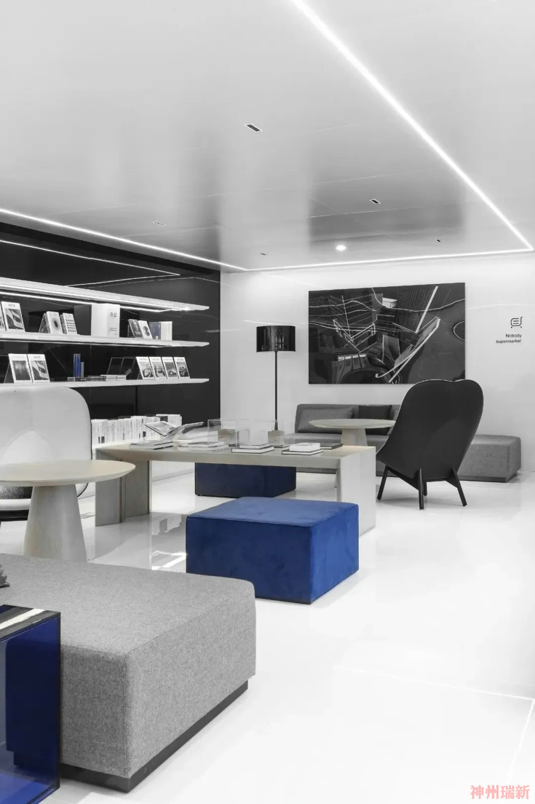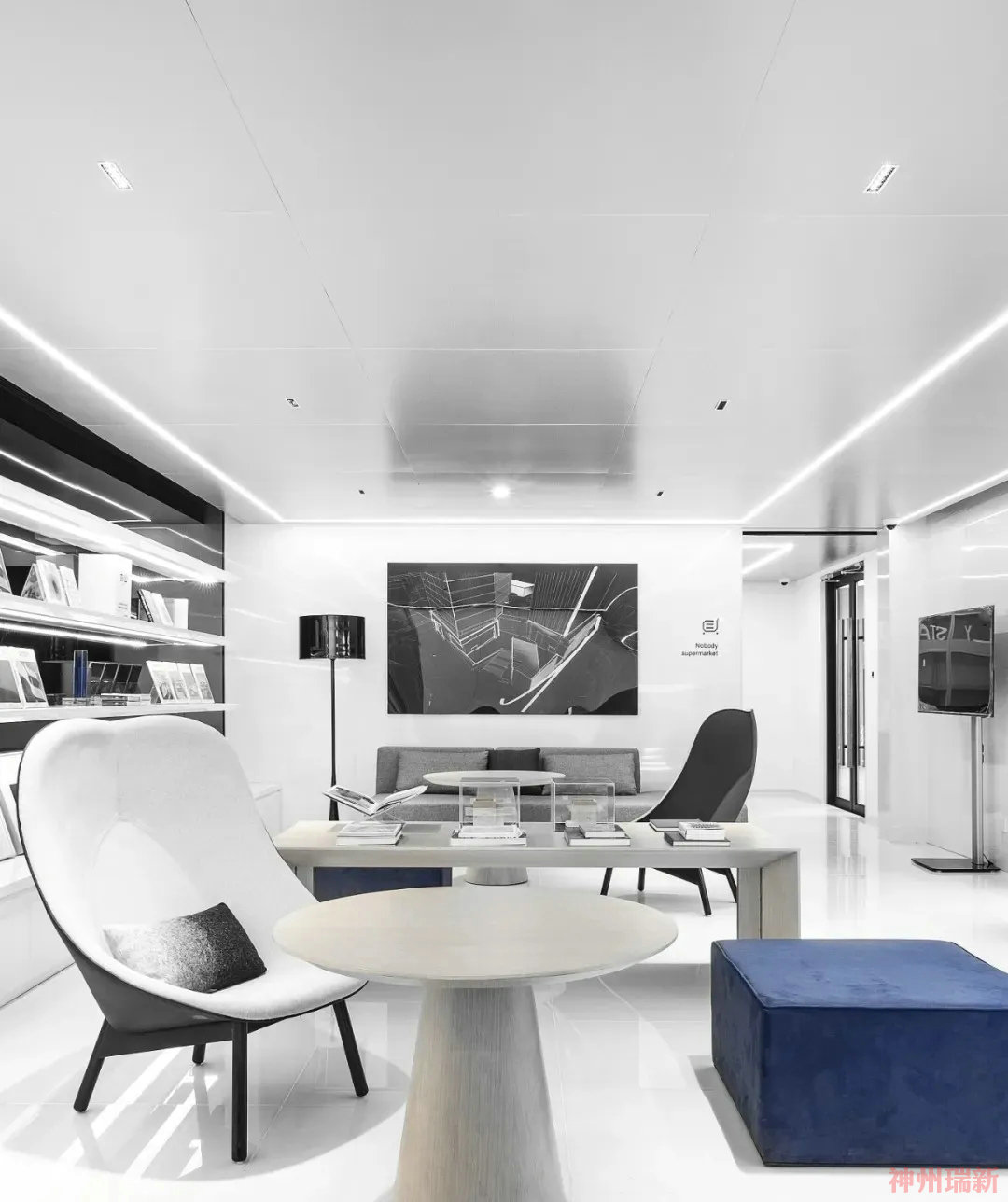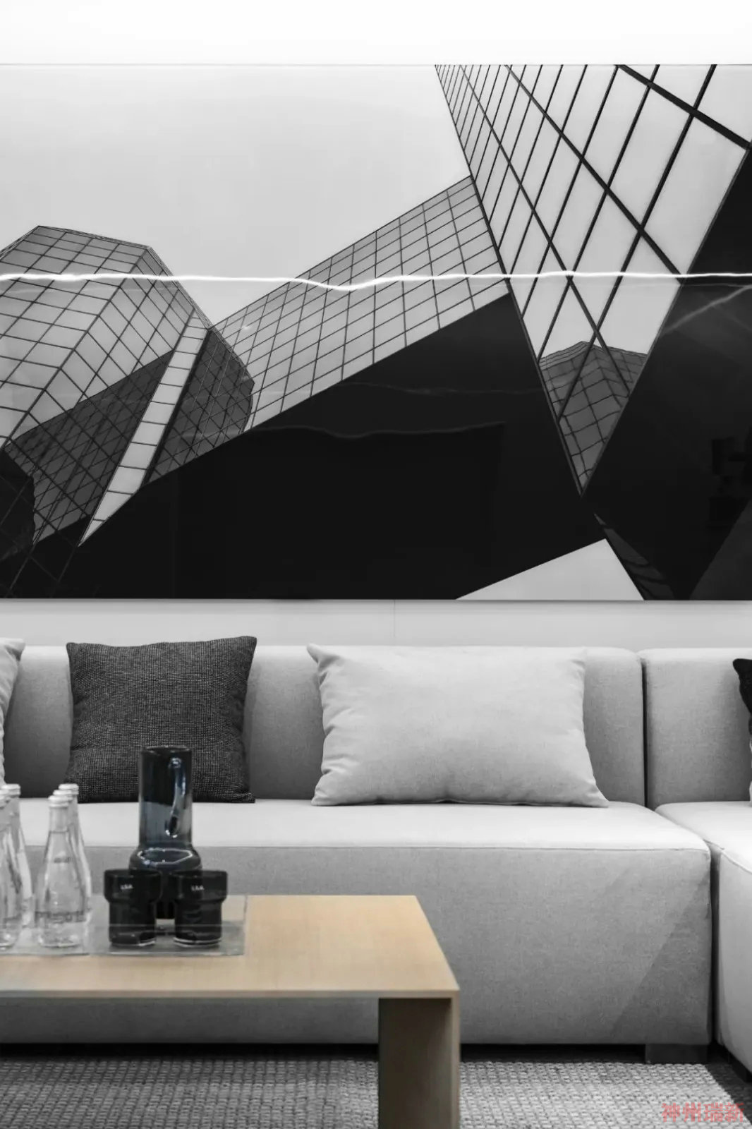 神州瑞新給大家介紹一個黑白經典的辦公室裝修設計案例。