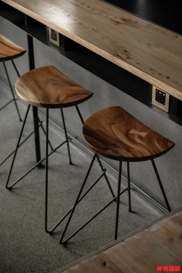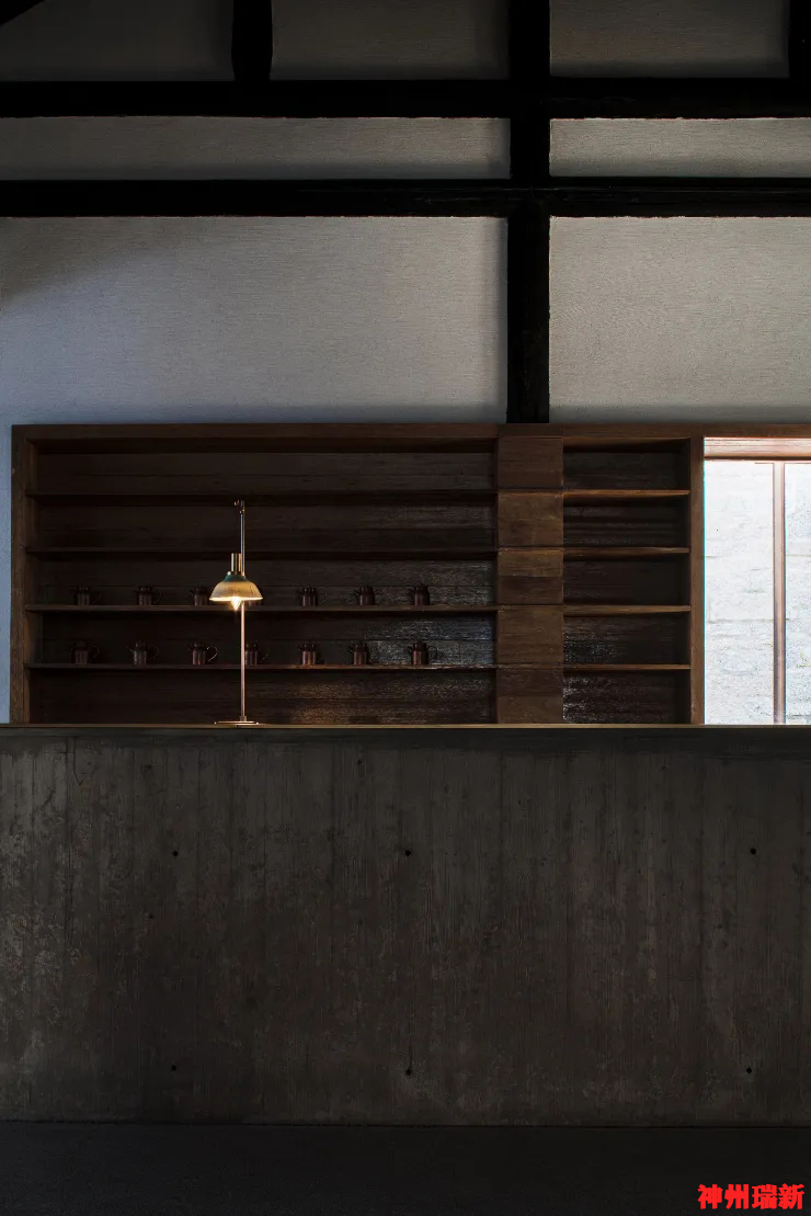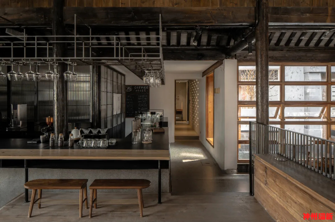 半開放式的水吧便于咖啡師與客人對話交流,咖啡的研磨、萃取等全過程一目了然。重構頂部空間,讓線條交錯中又有著獨特的幾何秩序的美。