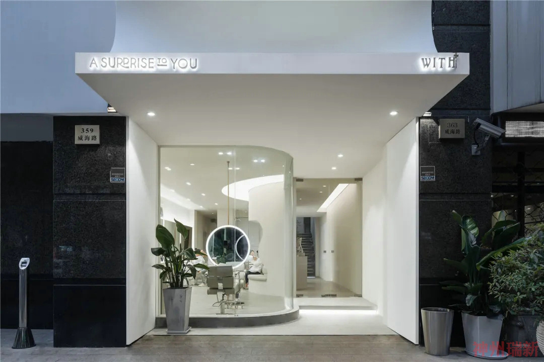 主入口門頭以極致的圓弧曲面去呈現,希望成為視覺的聚焦點。