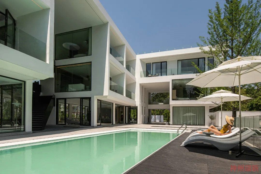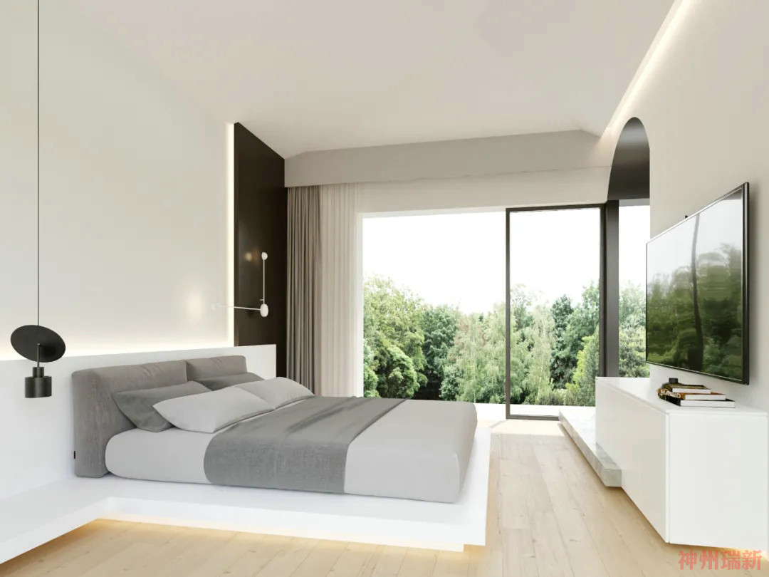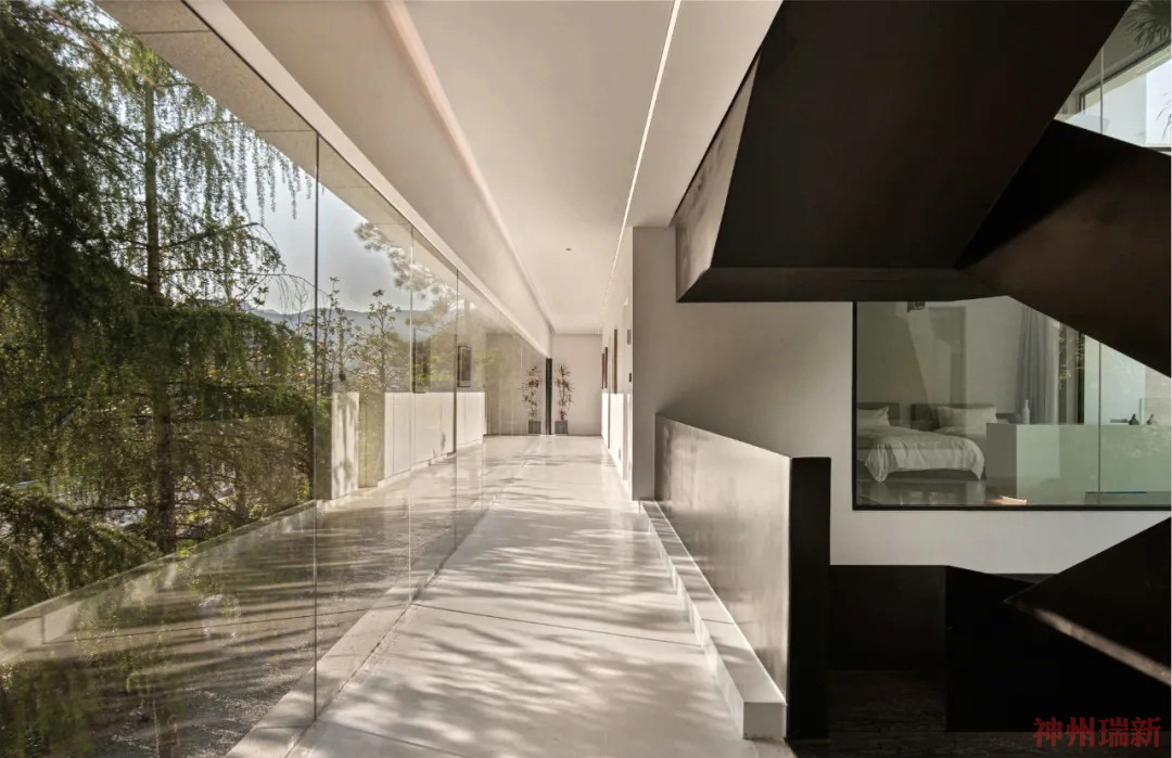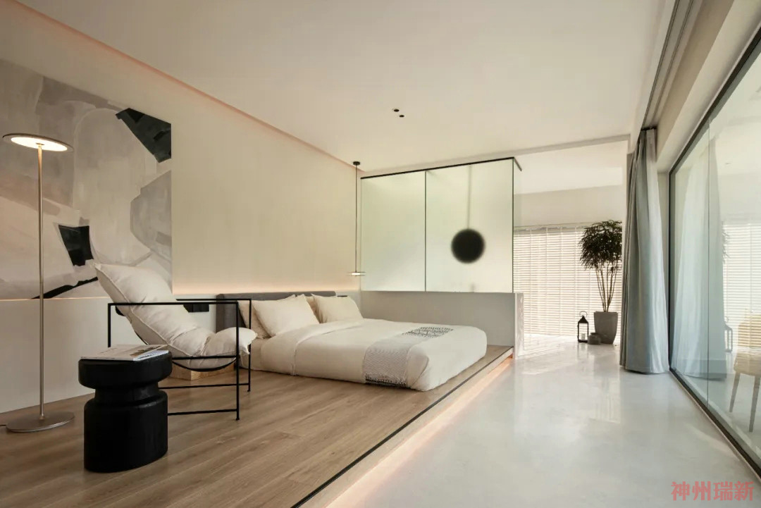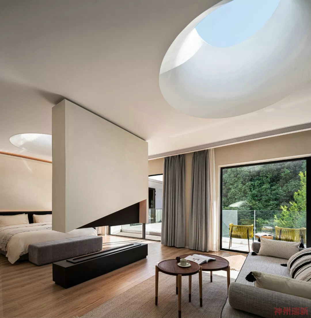 神州瑞新設(shè)計師希望每間房都能映出室外的風(fēng)景,房間有著270°落地玻璃窗,空間變得通透純凈。