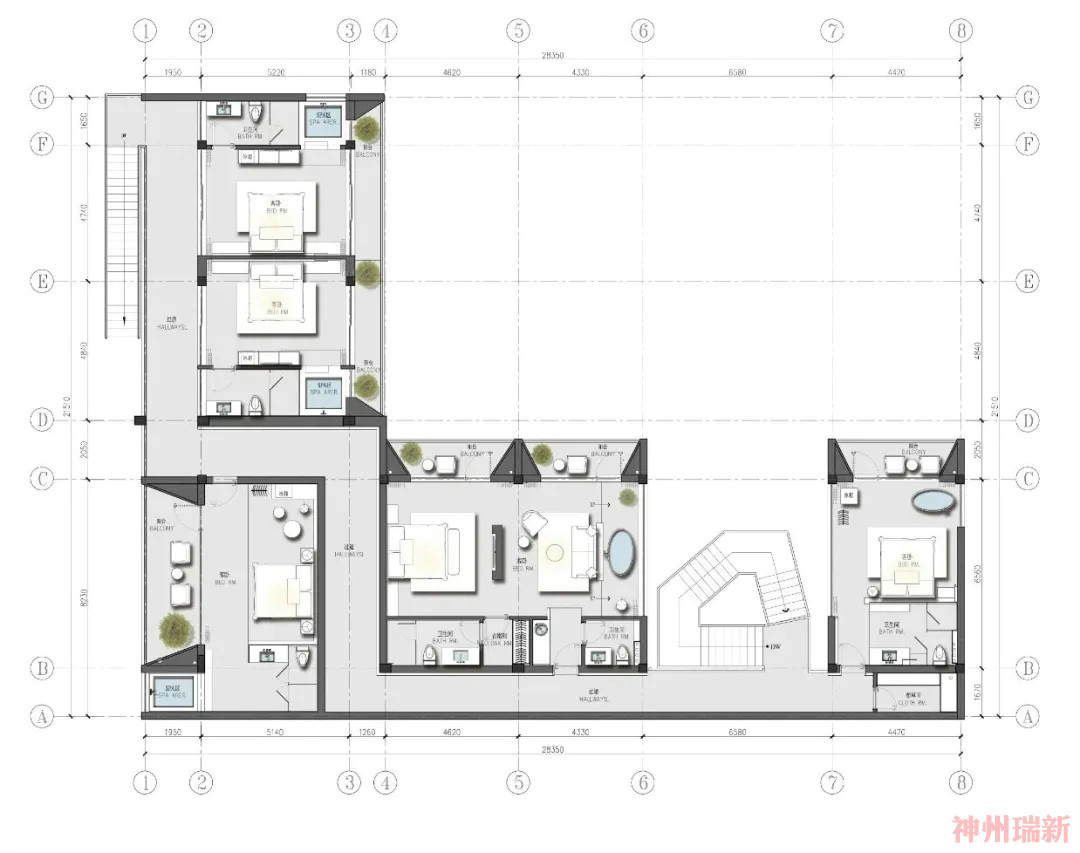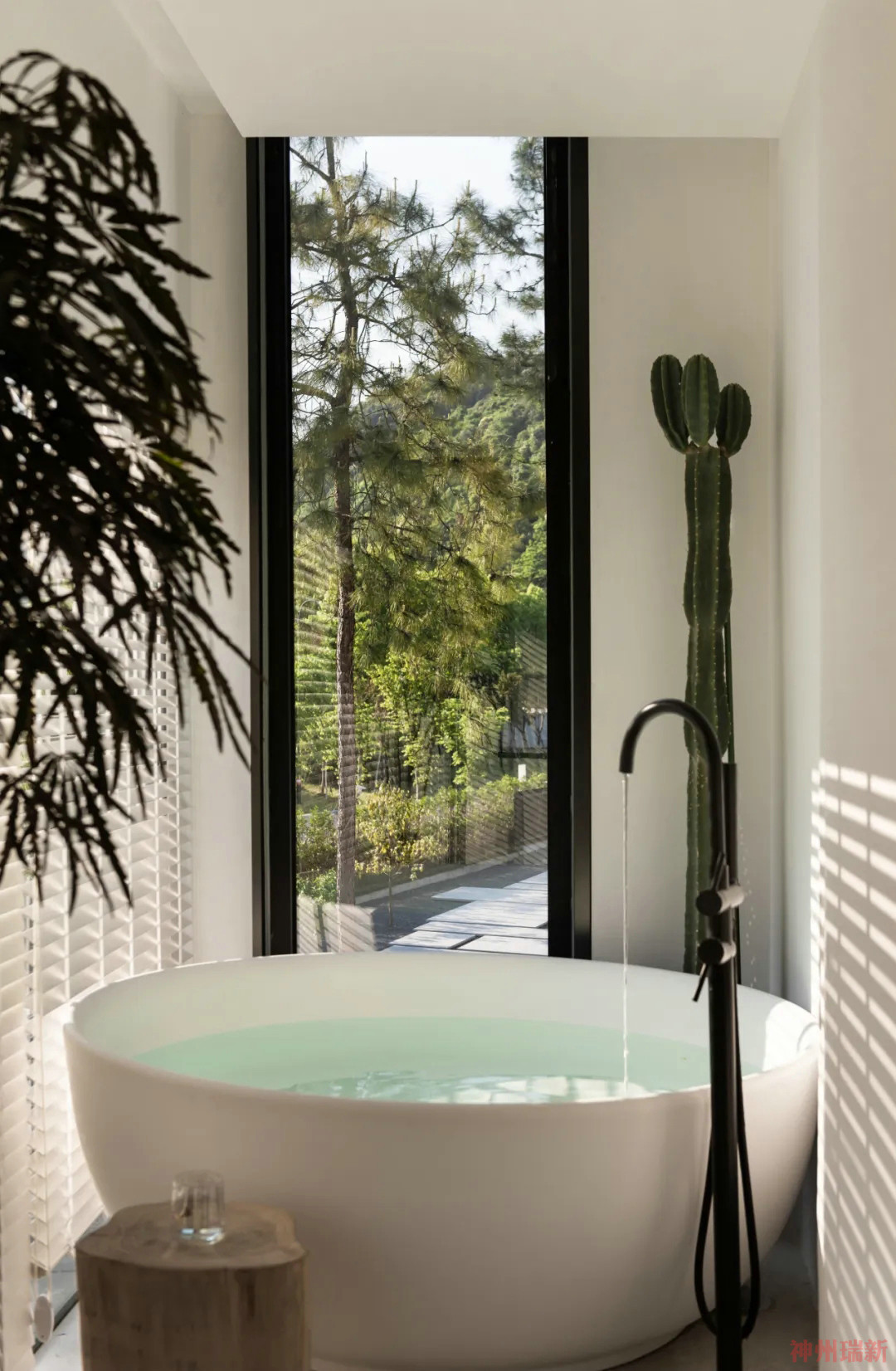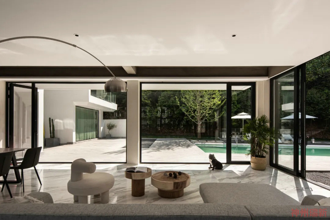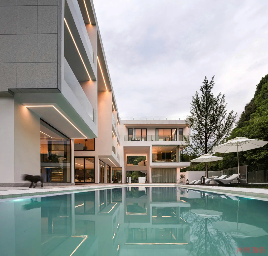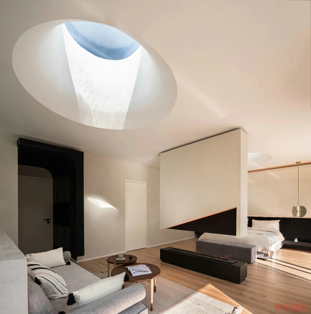 神州瑞新設(shè)計師希望每間房都能映出室外的風(fēng)景,房間有著270°落地玻璃窗,空間變得通透純凈。