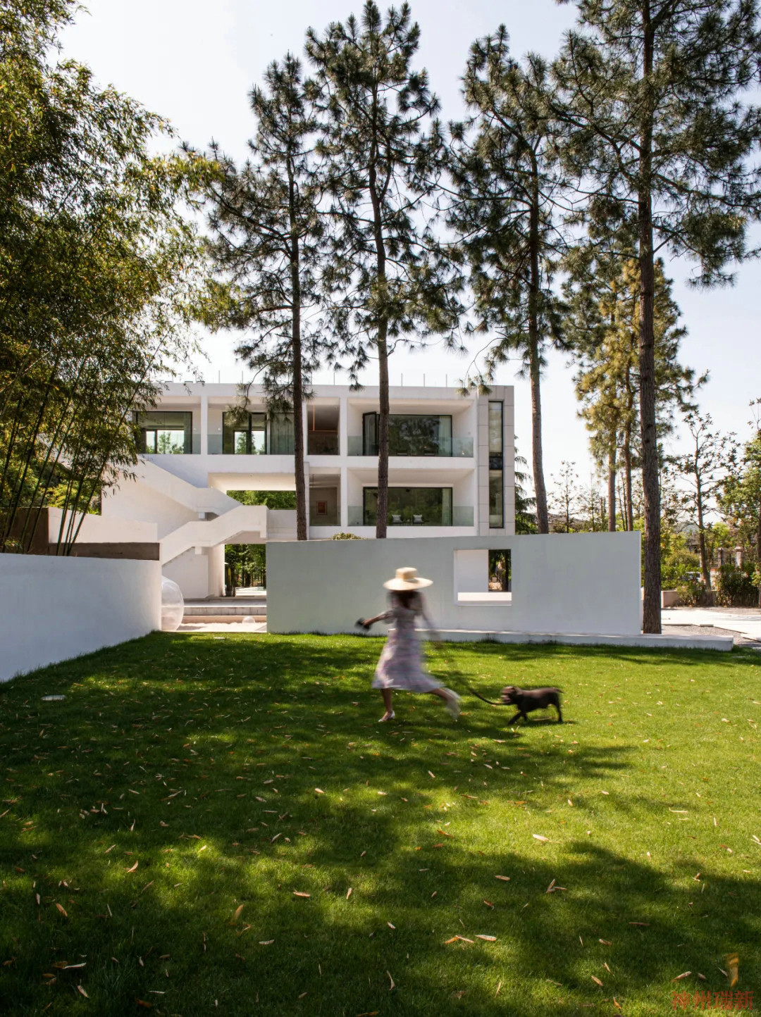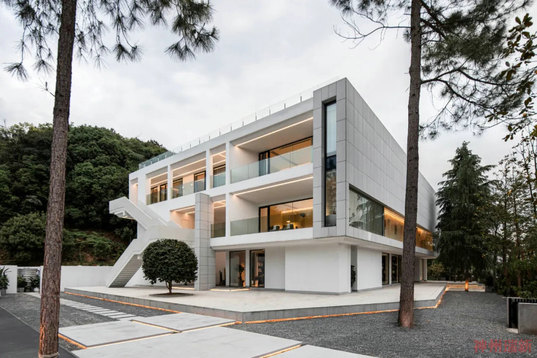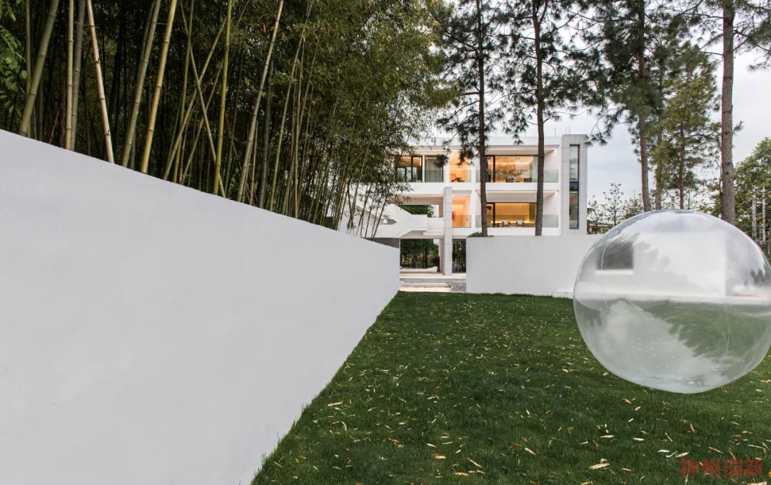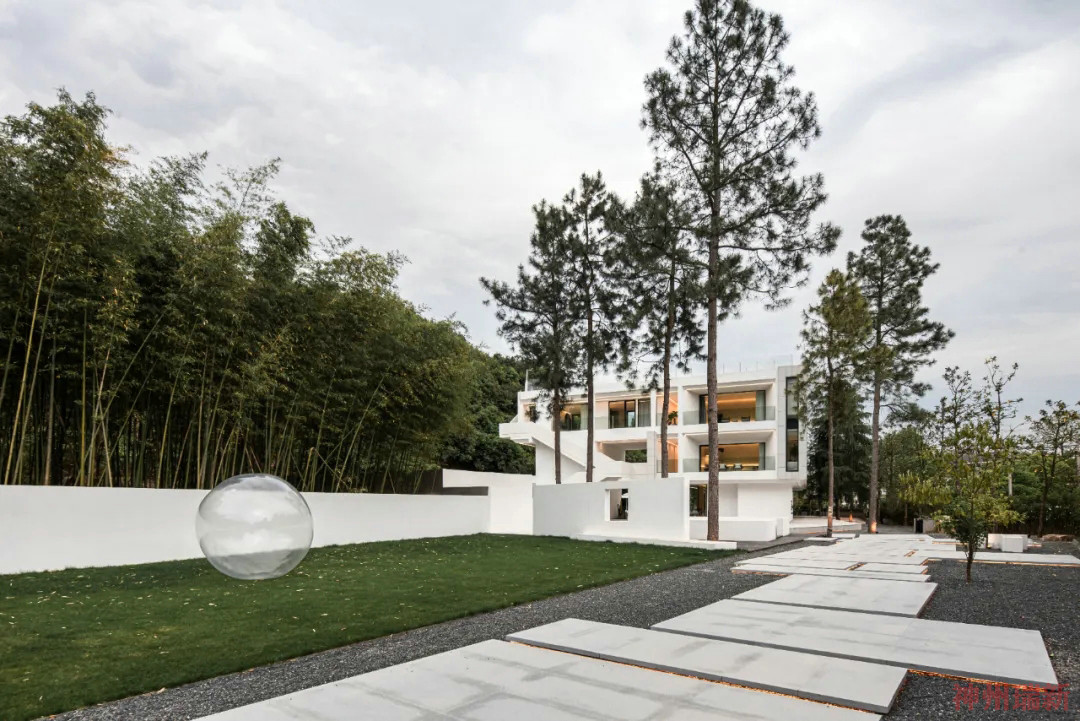 將底層架空,給予建筑通體白色,猶如一片潔白的云朵懸浮在空中,在周圍植物的映襯下散發(fā)出神秘安靜的氣息。