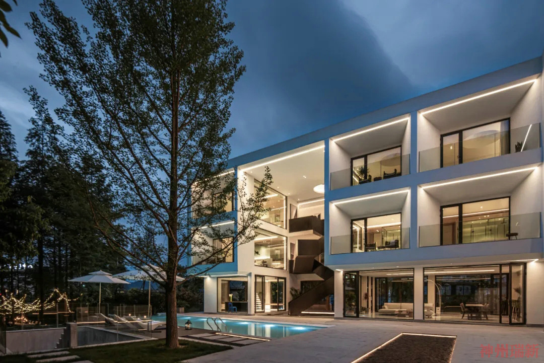 民宿主希望在這樣一片自然環(huán)境中,建筑能夠盡大可能地?fù)肀ё匀?,純澈,透明,神州瑞新設(shè)計師山林為主題,打造出了一個全新的建筑。