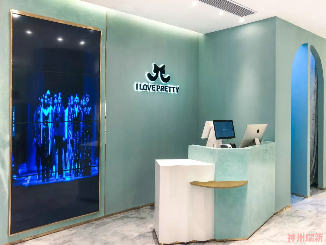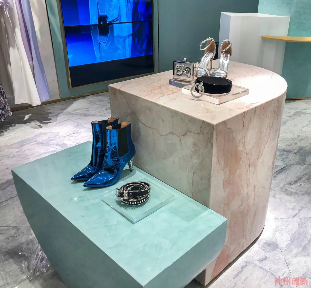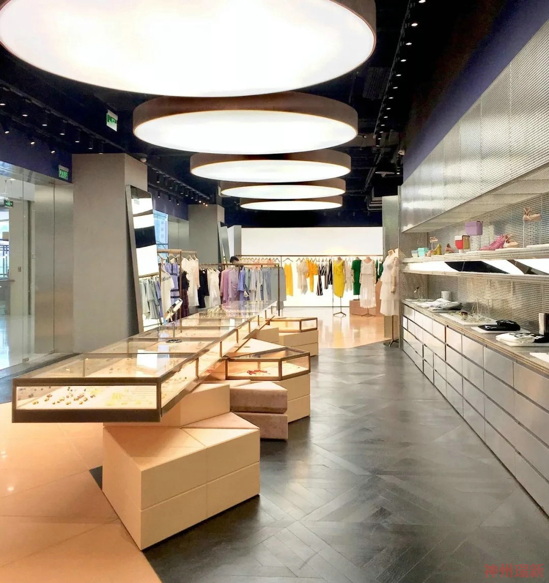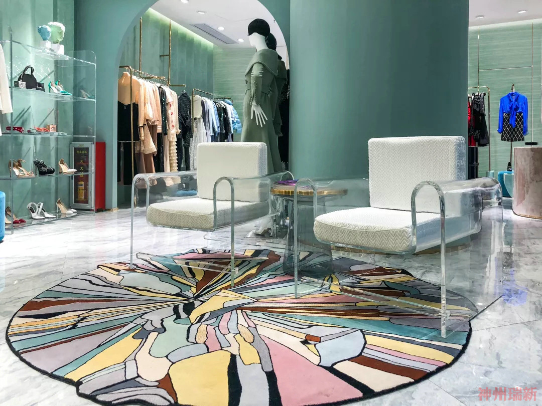 空間以淡淡的孔雀綠為主體色調,搭配精致復古的古銅色金屬材質和溫柔的水粉色石材,以透明亞克力材質作為單品點綴,前衛不失優雅。大面積的幾何元素在空間中相互疊加,新奇的顏色和不同觸感材質的碰撞,為空間增添了無限活力和時髦趣味。