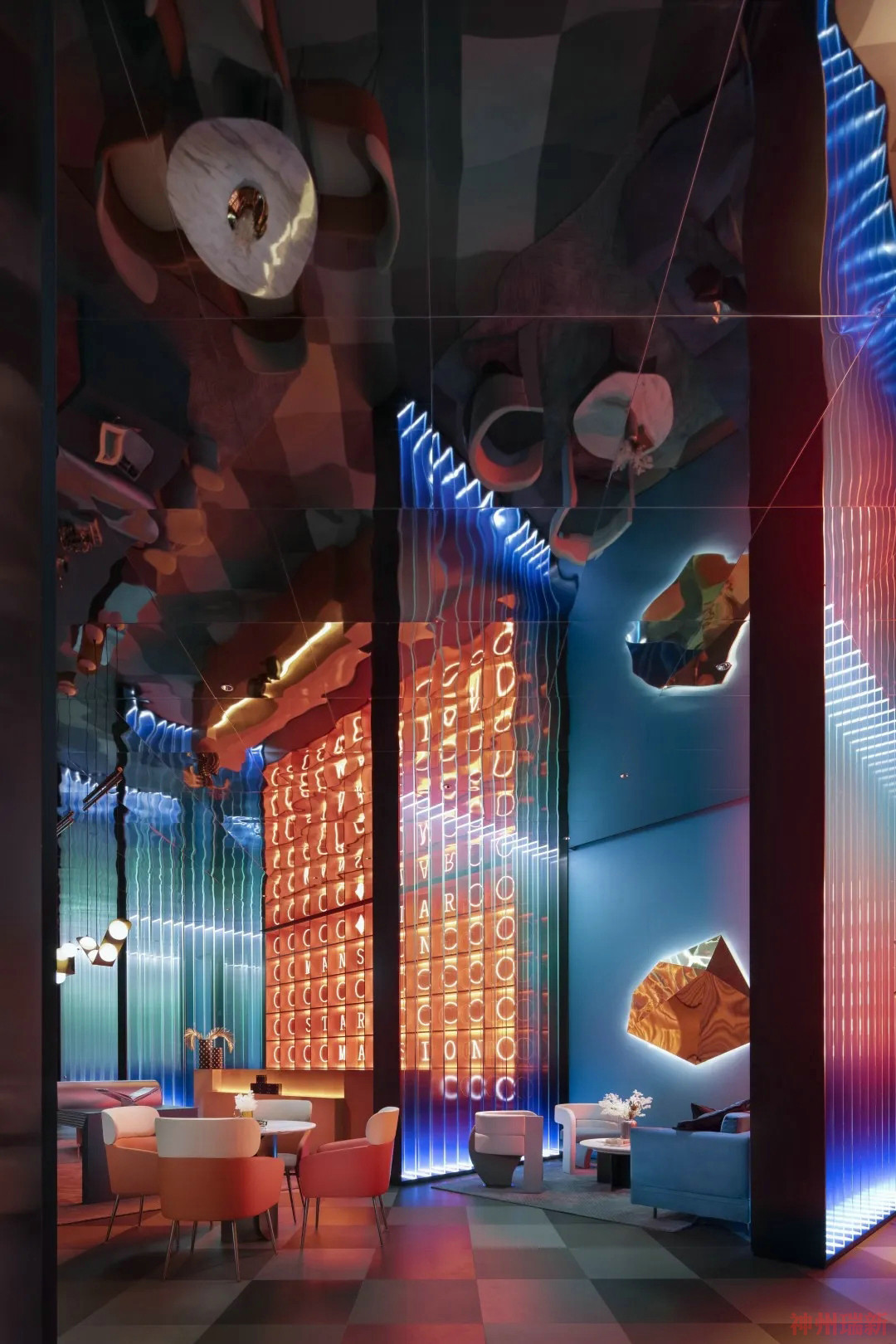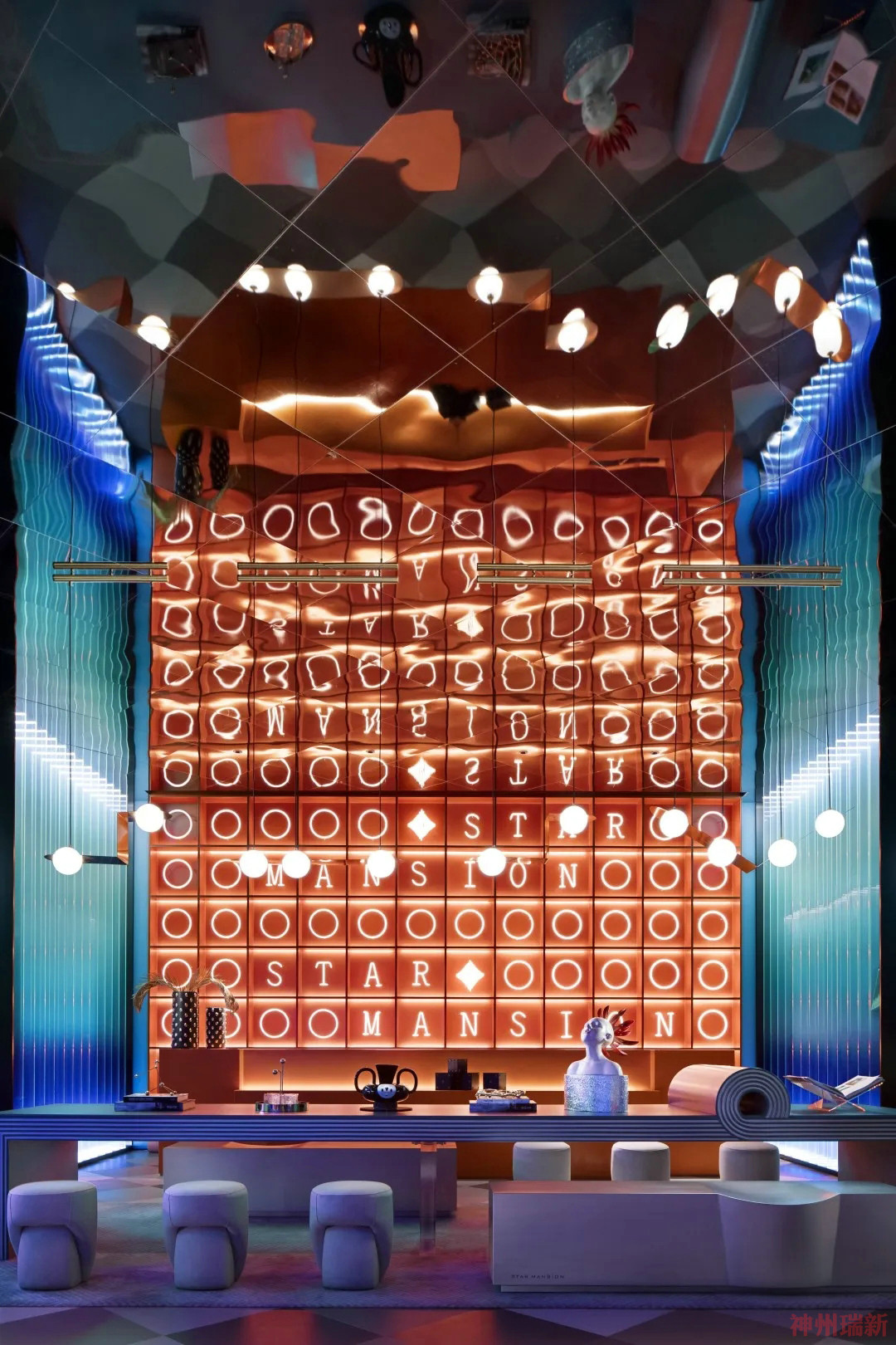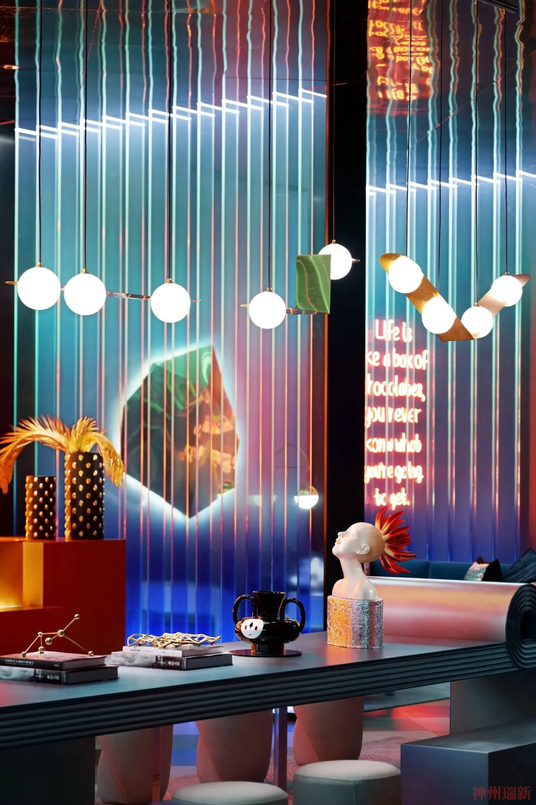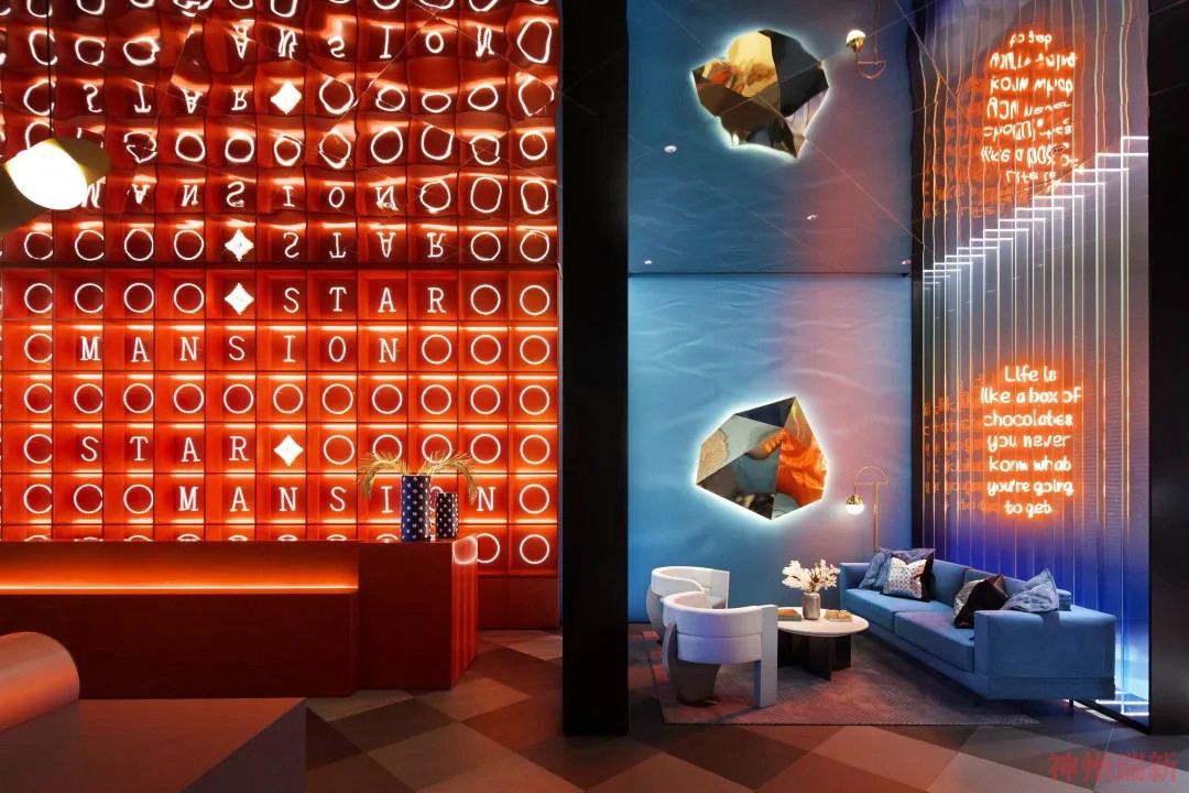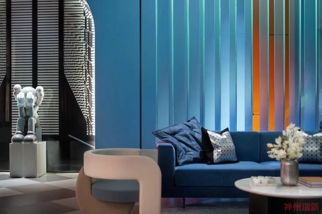 神州瑞新設(shè)計(jì)師通過極致的材料、形態(tài)與來構(gòu)成空間質(zhì)地對比度,又用極其有張力的色彩碰撞裂變,創(chuàng)造性地表達(dá)出一個屬于年輕人的天馬行空的異質(zhì)時空。