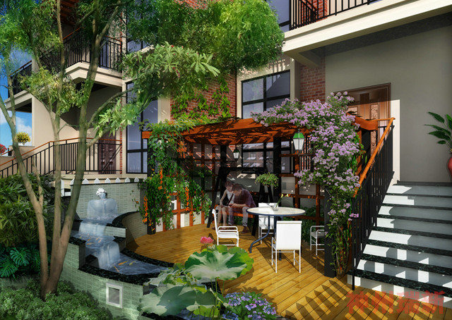 一般的聯排住宅有前后花園和露臺,這些空間可以很自然地把主人的生活空間延展到室外,這也是聯排住宅吸引消費者的重要魅力所在。神州瑞新設計對聯排住宅非常注重對室外空間的細節處理。
