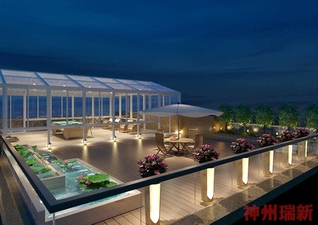 4、空中別墅,既處于社區優良的景觀中心,又處于樓層的頂端,以保證享受充分的景觀和采光。在各種配套上,也要顯現出獨 特的優勢,神州瑞新一般在樓頂設計有私人泳池;獨享屋頂花園;電梯入戶等等。